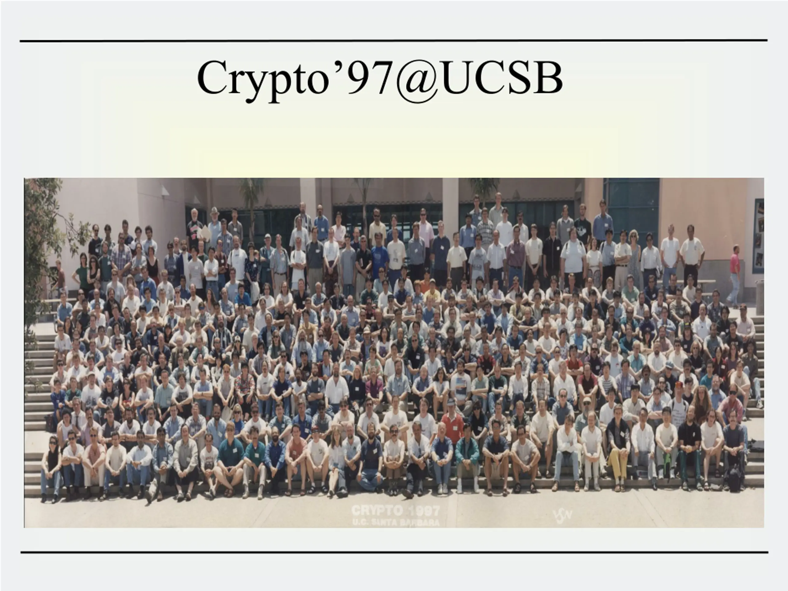 Crypto84@UCSB E.Okamoto G. Simmons (passed away) A.Shamir J.Quisquater D. Chaum K. Kim R. Rivest W. Diffie D.Denning T. Berson