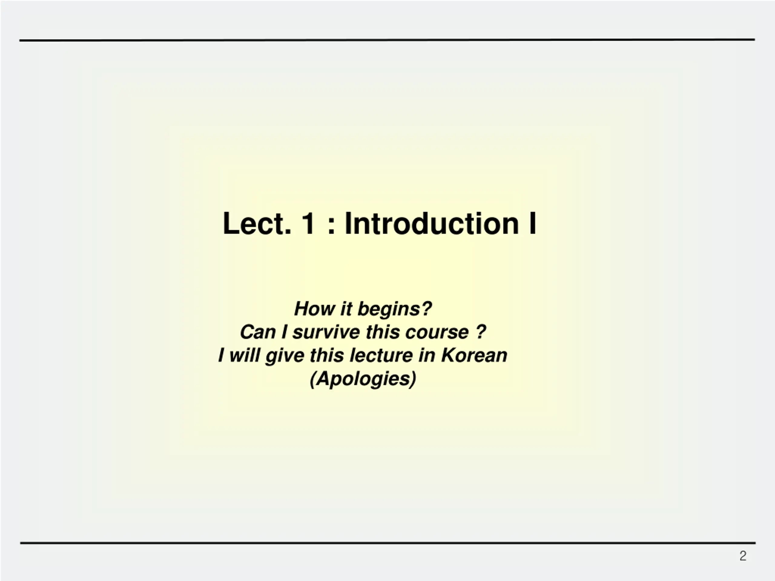 Lect. 1 : Introduction I How it begins? Can I survive this course ? I will give this lecture in Korean (Apologies) 2