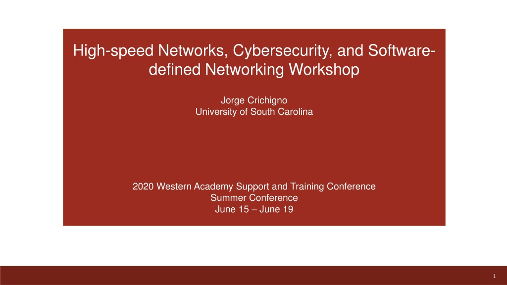 High-speed Networks, Cybersecurity, and Software- defined Networking Workshop Jorge Crichigno University of South Carolina 2020 Western Academy Support and Training Conference Summer Conference June 15 June 19 1