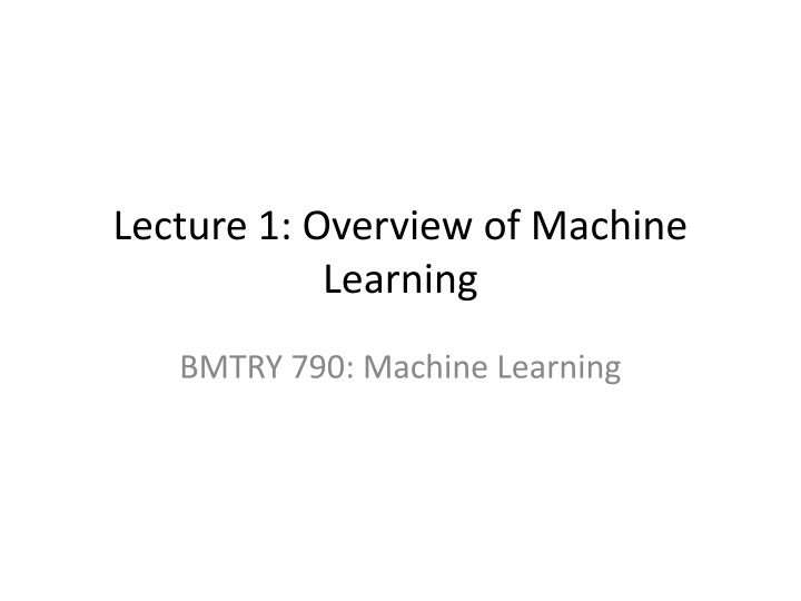Lecture 1: Overview of Machine Learning BMTRY 790: Machine Learning