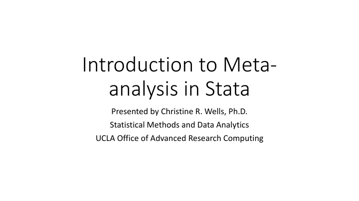 Introduction to Meta- analysis in Stata Presented by Christine R. Wells, Ph.D. Statistical Methods and Data Analytics UCLA Office of Advanced Research Computing