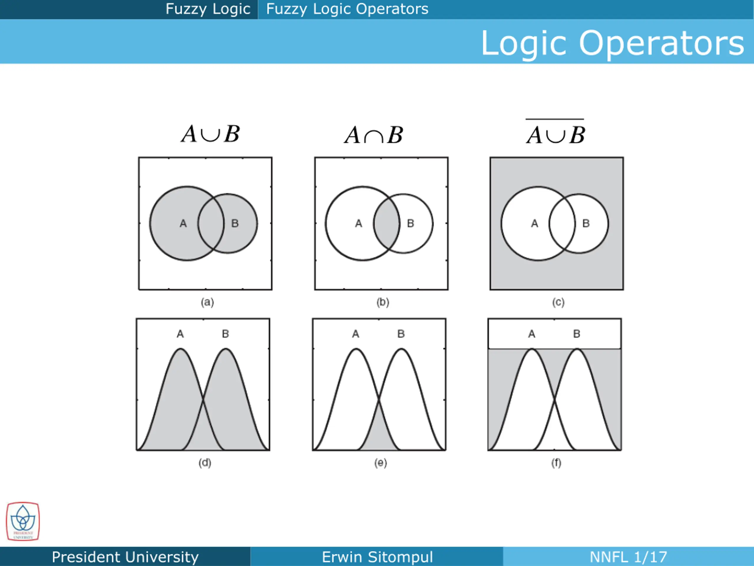 Fuzzy Logic Fuzzy Logic Operators Logic Operators A B A B A B President University Erwin Sitompul NNFL 1/17