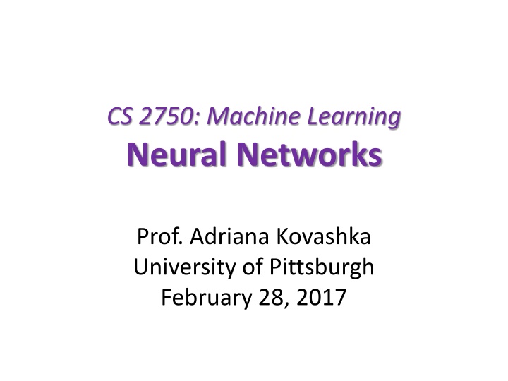 CS 2750: Machine Learning Neural Networks Prof. Adriana Kovashka University of Pittsburgh February 28, 2017