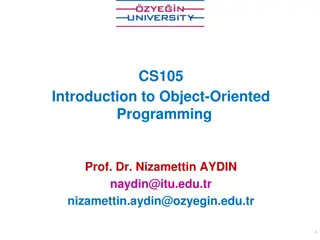 CS105 Introduction to Object-Oriented Programming Prof. Dr. Nizamettin AYDIN naydin@itu.edu.tr nizamettin.aydin@ozyegin.edu.tr 1