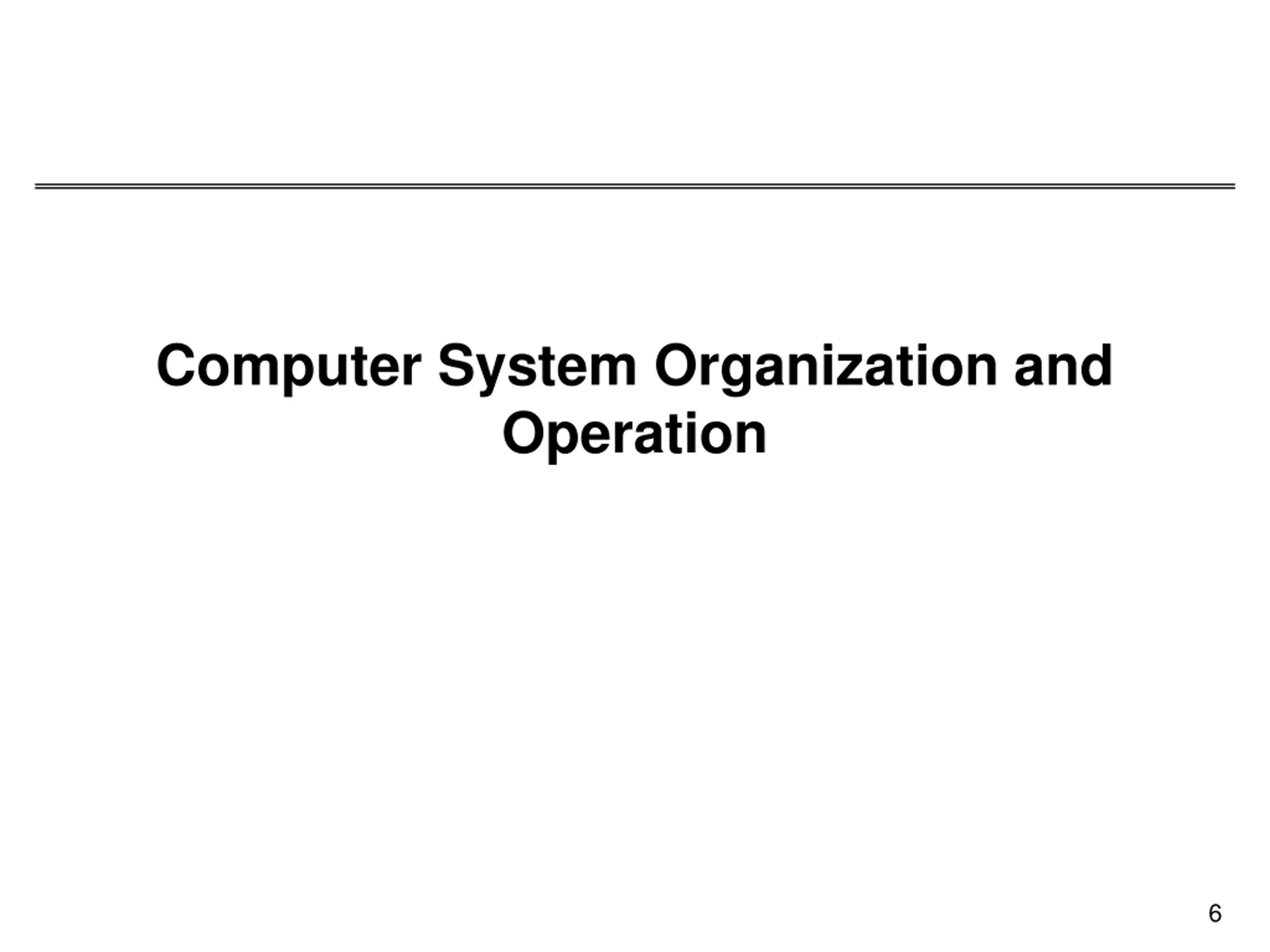Operating System Definition (as a software) No universally accepted definition Everything a vendor ships when you order an operating system is good approximation But varies wildly Kernel: running all the time; having most of the functionality Everything else: either a system program (ships with the operating system) or an application program system programs + you can install other applications kernel System programs: programs that are associated with the operating system (Some application programs) OS CD 5