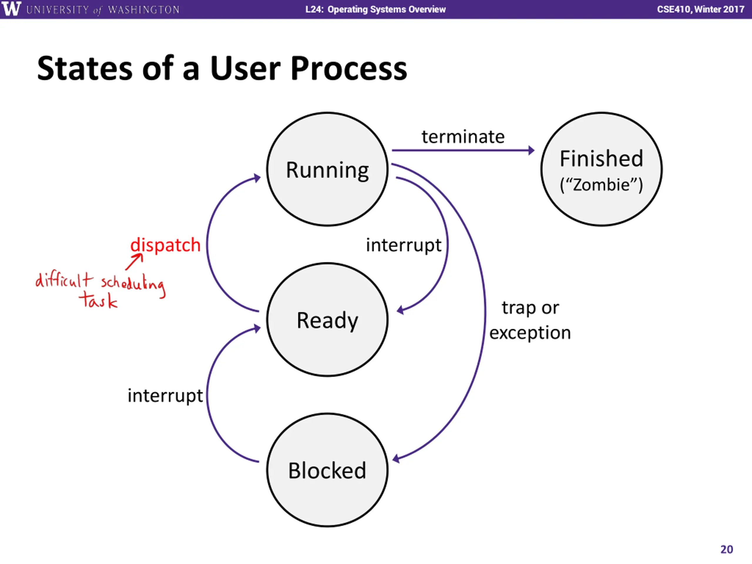 L01: Intro, Combinational Logic L24: Operating Systems Overview CSE369, Autumn 2016 CSE410, Winter 2017 States of a User Process terminate Finished ( Zombie ) Running dispatch interrupt trap or exception Ready interrupt Blocked 20