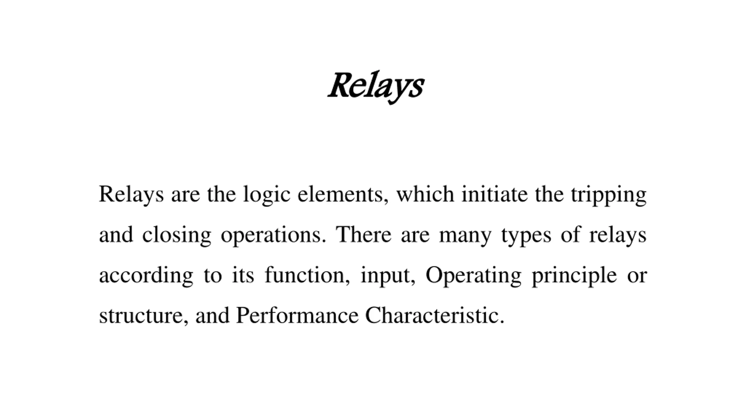 Relays Relays Relays are the logic elements, which initiate the tripping and closing operations. There are many types of relays according to its function, input, Operating principle or structure, and Performance Characteristic.