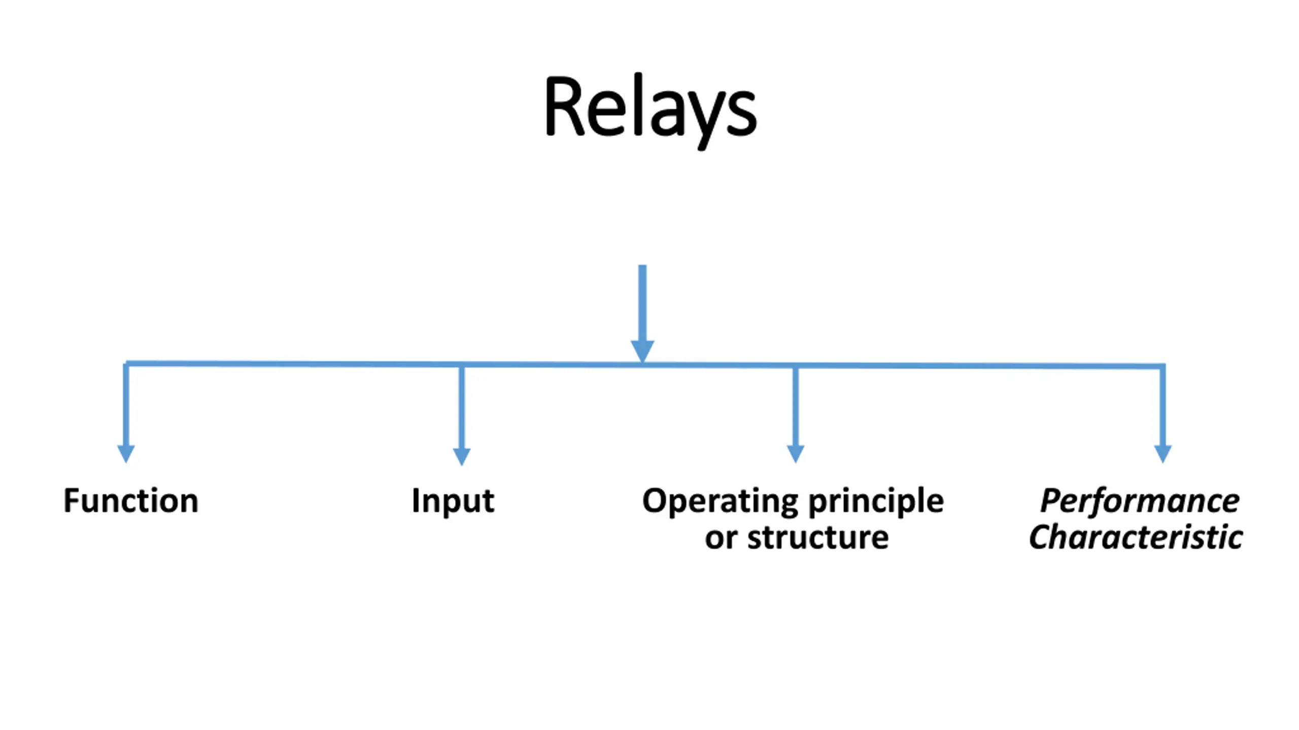 Relays Relays Function Input Operating principle Performance or structure Characteristic
