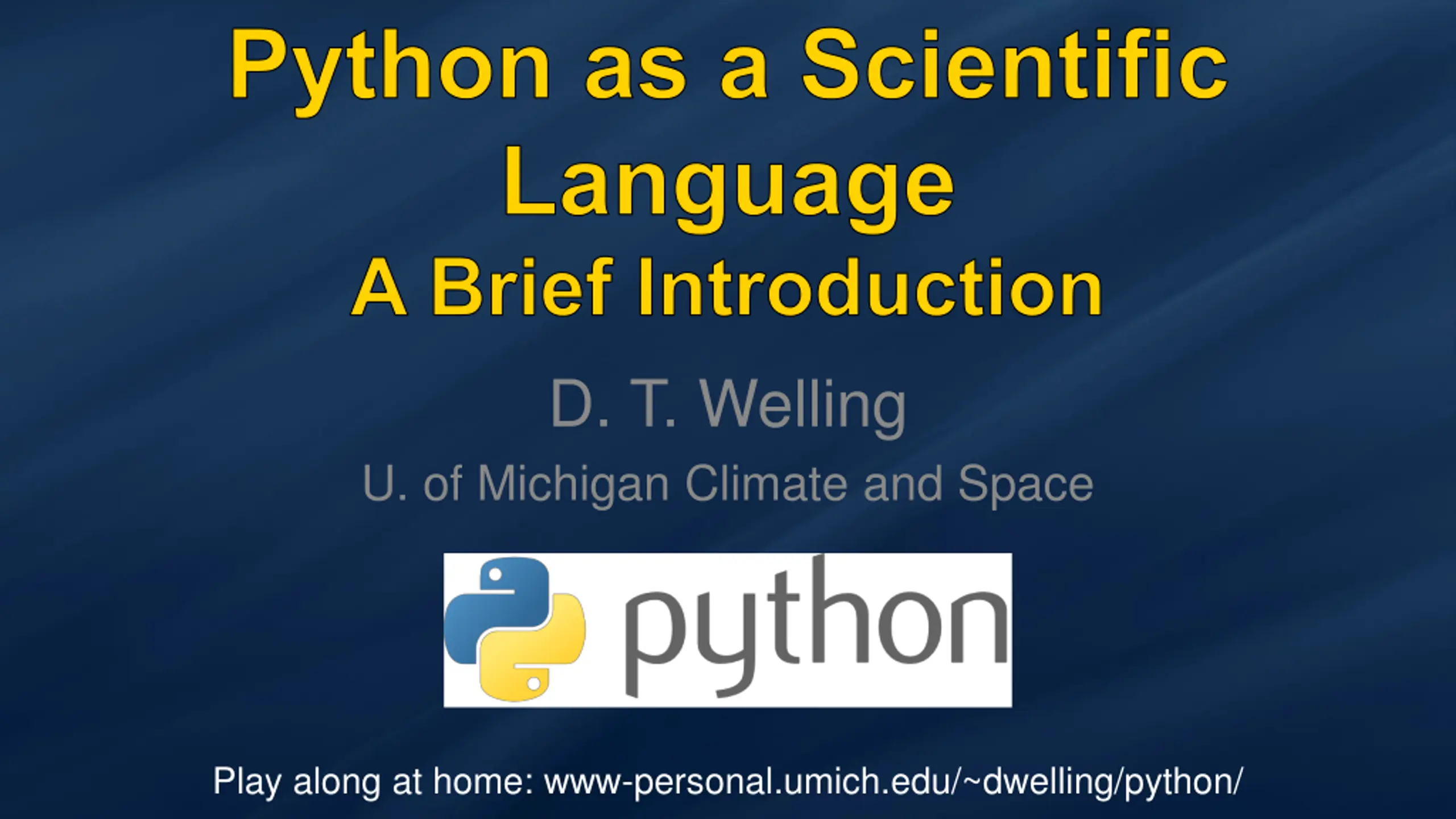 Python as a Scientific Language A Brief Introduction D. T. Welling U. of Michigan Climate and Space Play along at home: www-personal.umich.edu/~dwelling/python/