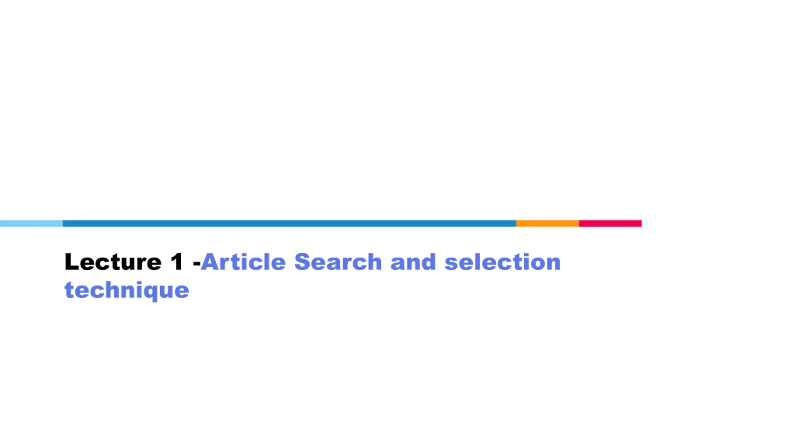 Lecture 1 -Article Search and selection technique