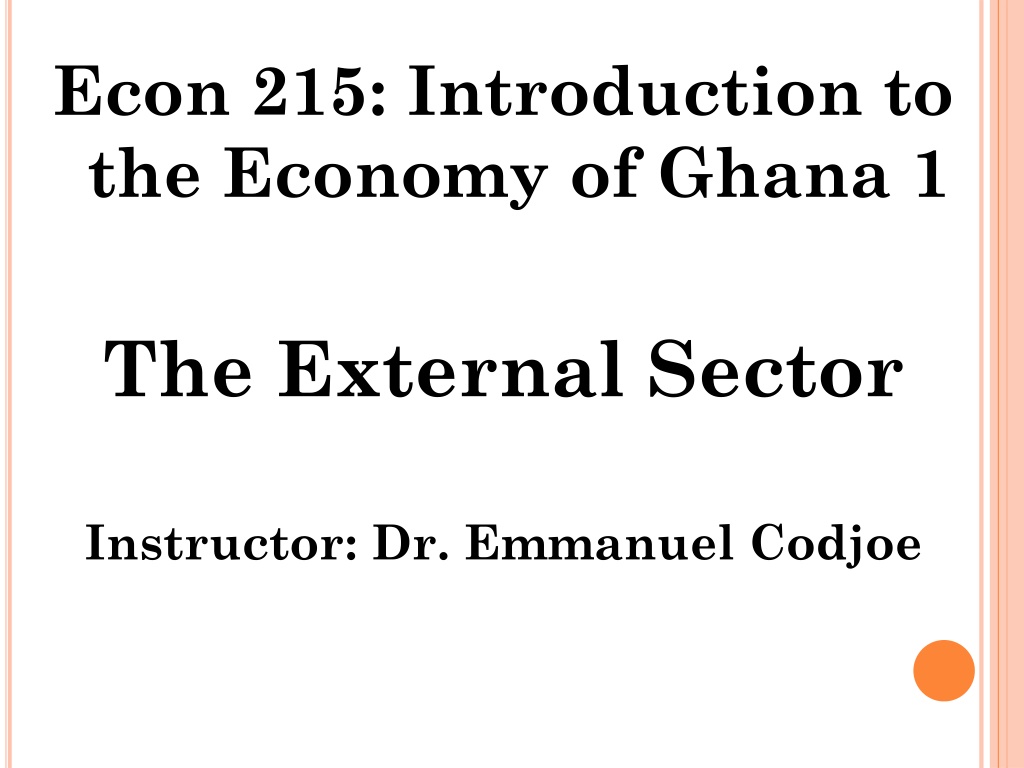 Econ 215: Introduction to the Economy of Ghana 1 The External Sector Instructor: Dr. Emmanuel Codjoe