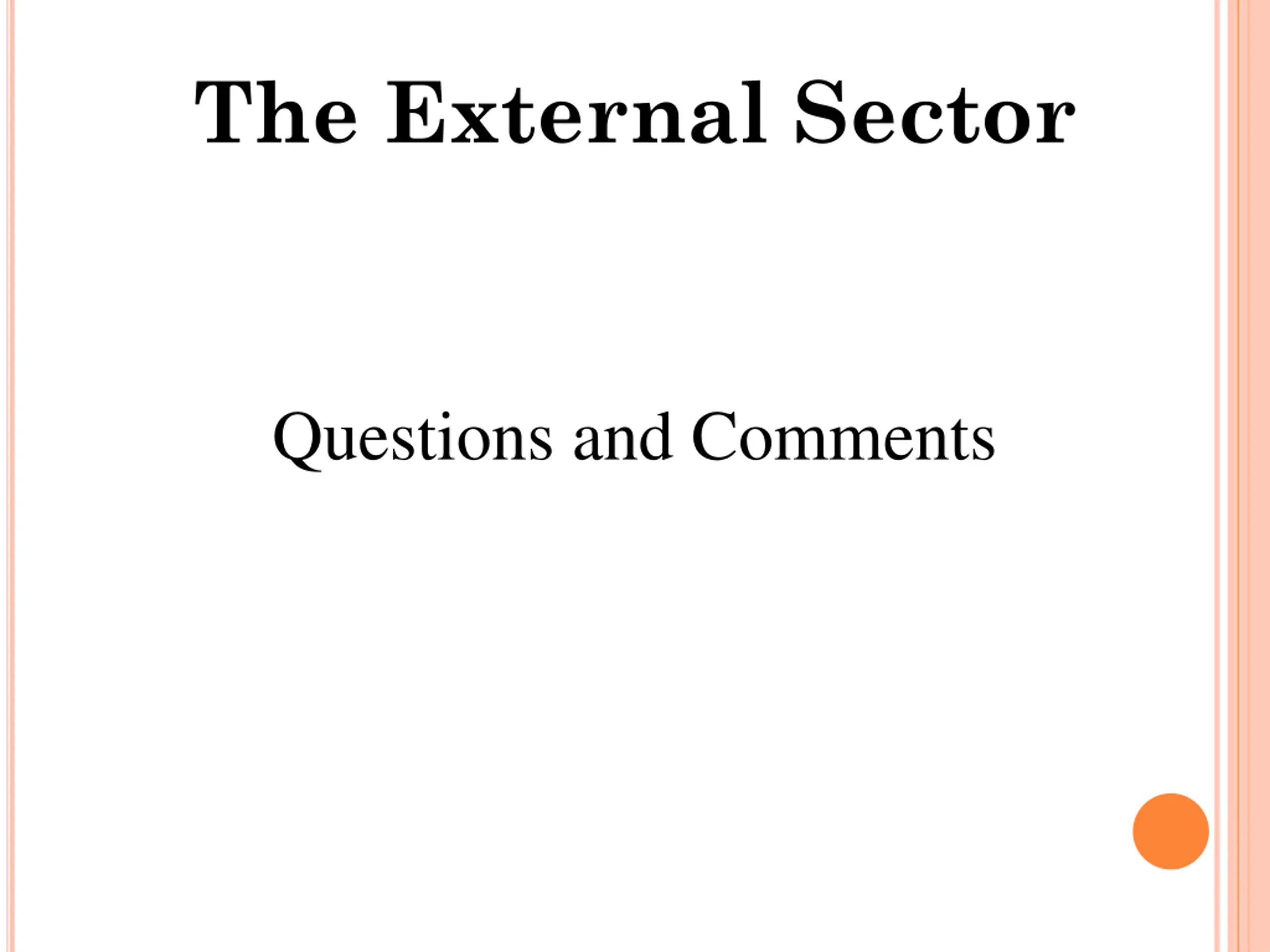 The External Sector: Some Important Relations Remember!!! Y (S-I) + (T-G) (X-M) ------------ (1) If we assume for a moment we are dealing with a closed economy, then all output is either consumed or saved/invested. Where we have an open economy, then the identity above sheds some interesting light on the interactions between the economy and the rest of the world.