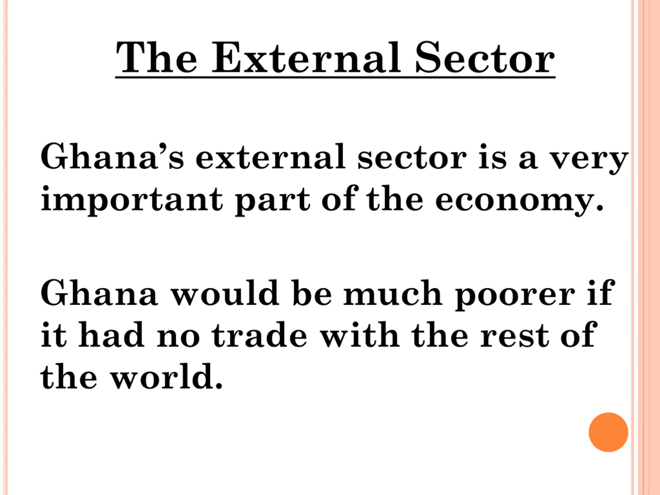 The External Sector Ghana s external sector is a very important part of the economy. Ghana would be much poorer if it had no trade with the rest of the world.