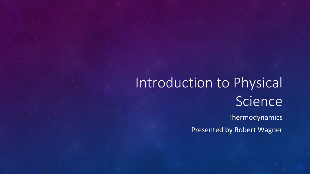 Introduction to Physical Science Thermodynamics Presented by Robert Wagner