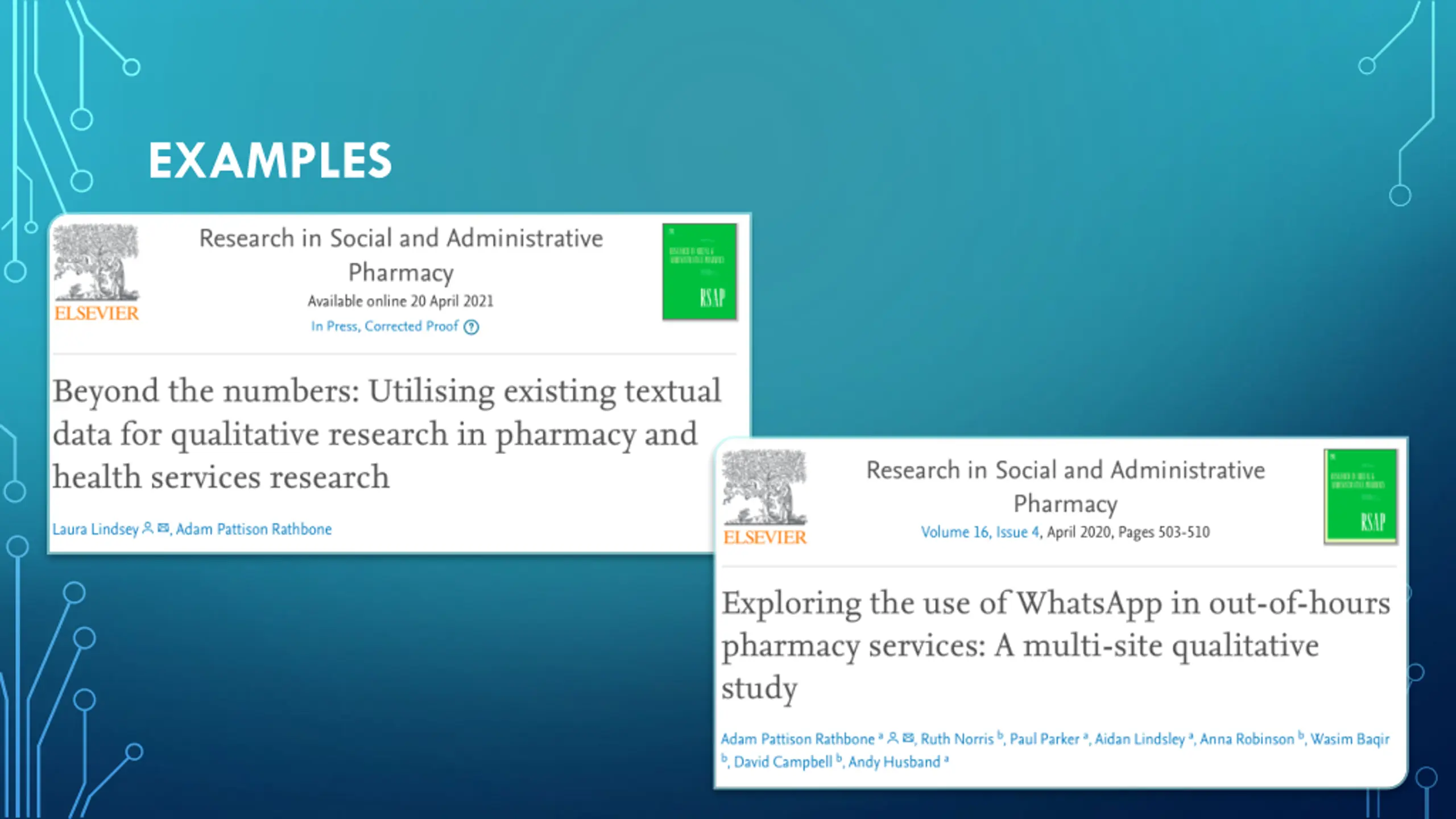EXAMPLES OF ROUTINELY COLLECTED MEDICINES- RELATED DATA (THAT WE COULD THINK OF) Group messaging channels (e.g.WhatsApp groups) Incident reporting data (e.g. DATIX) Records of meetings (e.g. minutes) Prescribing data (e.g. primary care dispensing data, ePrescribing systems) Service delivery records (e.g. PharmOutcomes) Medical records (e.g. EMIS searches) Patient-generated data (e.g. national questionnaires) National project data (e.g. coordinated audits) Healthcare utilization data (e.g. Hospital Episode Statistics)