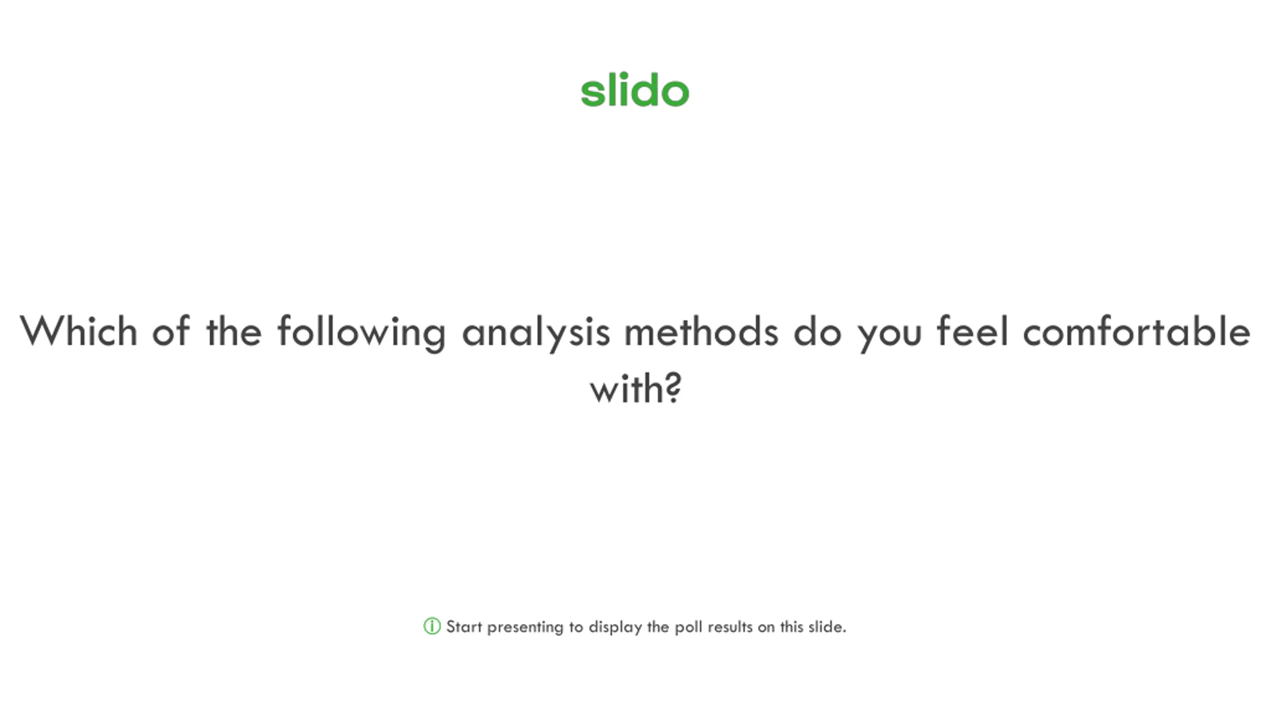 Which of the following analysis methods do you feel comfortable with? Start presenting to display the poll results on this slide.
