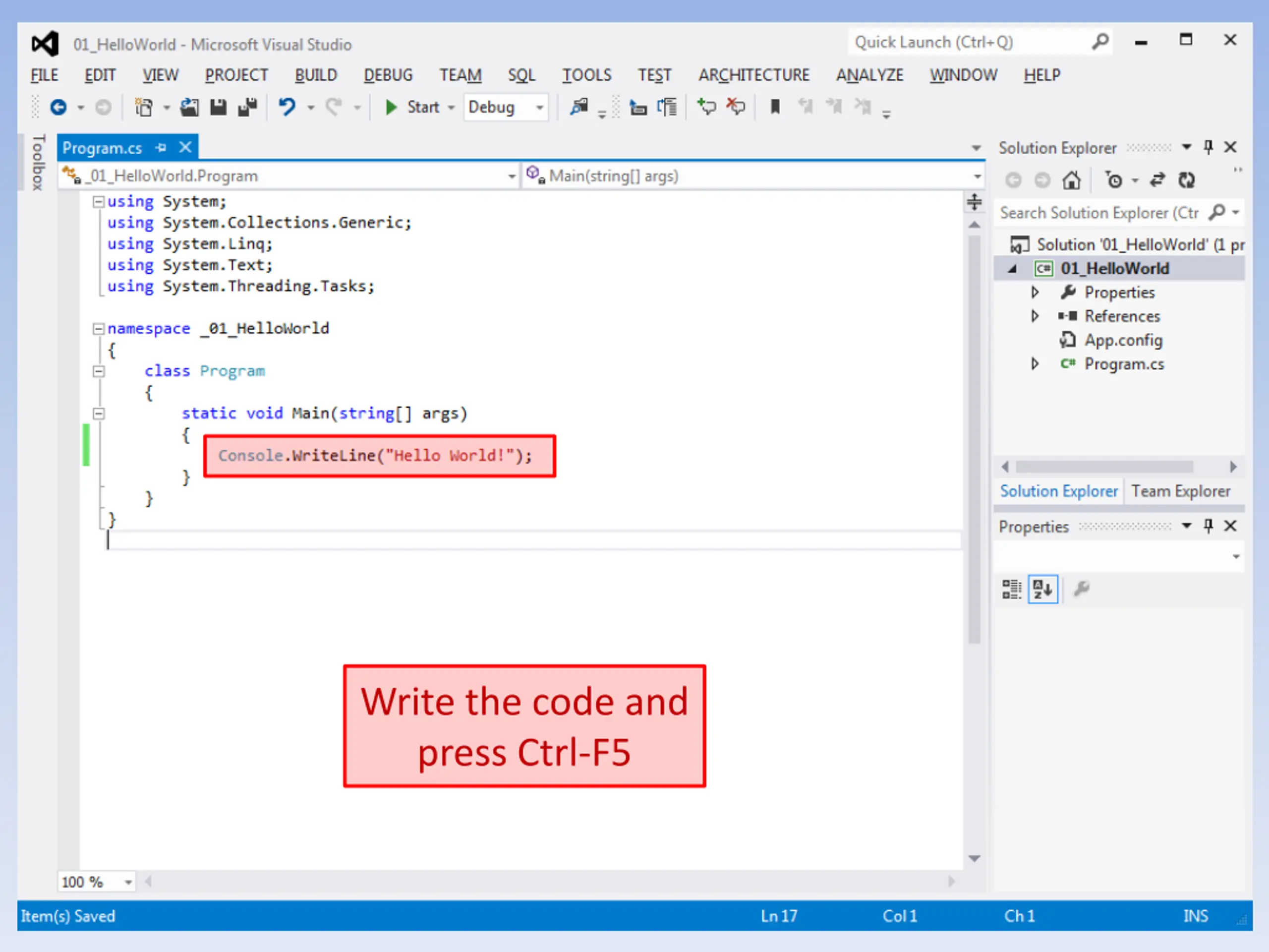 Write the code and press Ctrl-F5 13