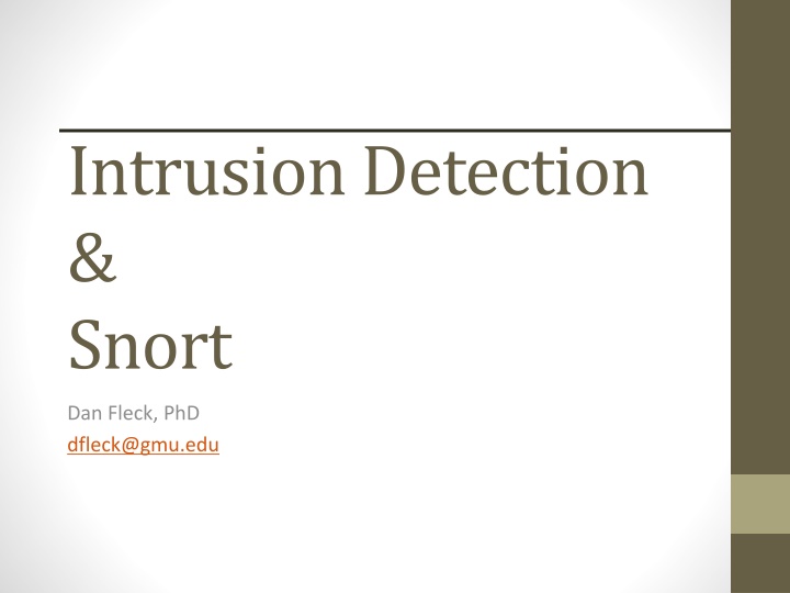 Intrusion Detection & Snort Dan Fleck, PhD dfleck@gmu.edu