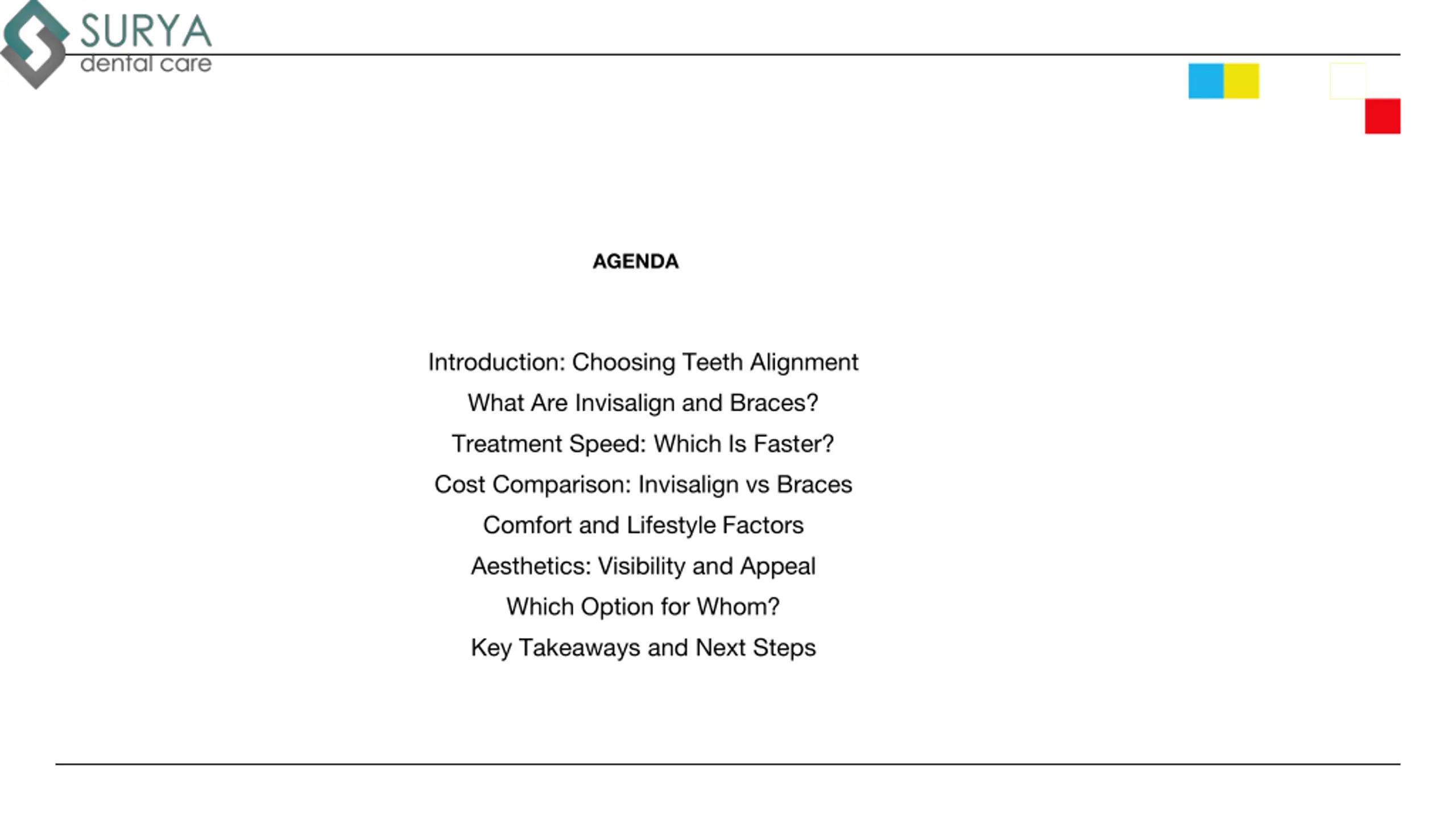 AGENDA Introduction: Choosing Teeth Alignment What Are Invisalign and Braces? Treatment Speed: Which Is Faster? Cost Comparison: Invisalign vs Braces Comfort and Lifestyle Factors Aesthetics: Visibility and Appeal Which Option for Whom? Key Takeaways and Next Steps
