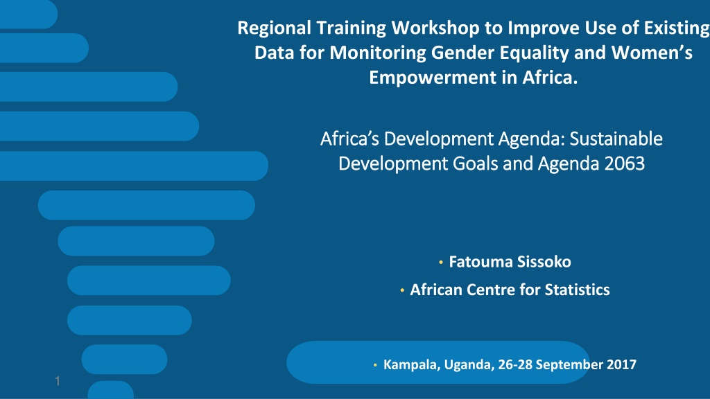 26-28 Regional Training Workshop to Improve Use of Existing Data for Monitoring Gender Equality and Women s Empowerment in Africa. Africa s Development Agenda: Sustainable Africa s Development Agenda: Sustainable Development Goals and Agenda 2063 Development Goals and Agenda 2063 Fatouma Sissoko African Centre for Statistics Kampala, Uganda, 26-28 September 2017 1