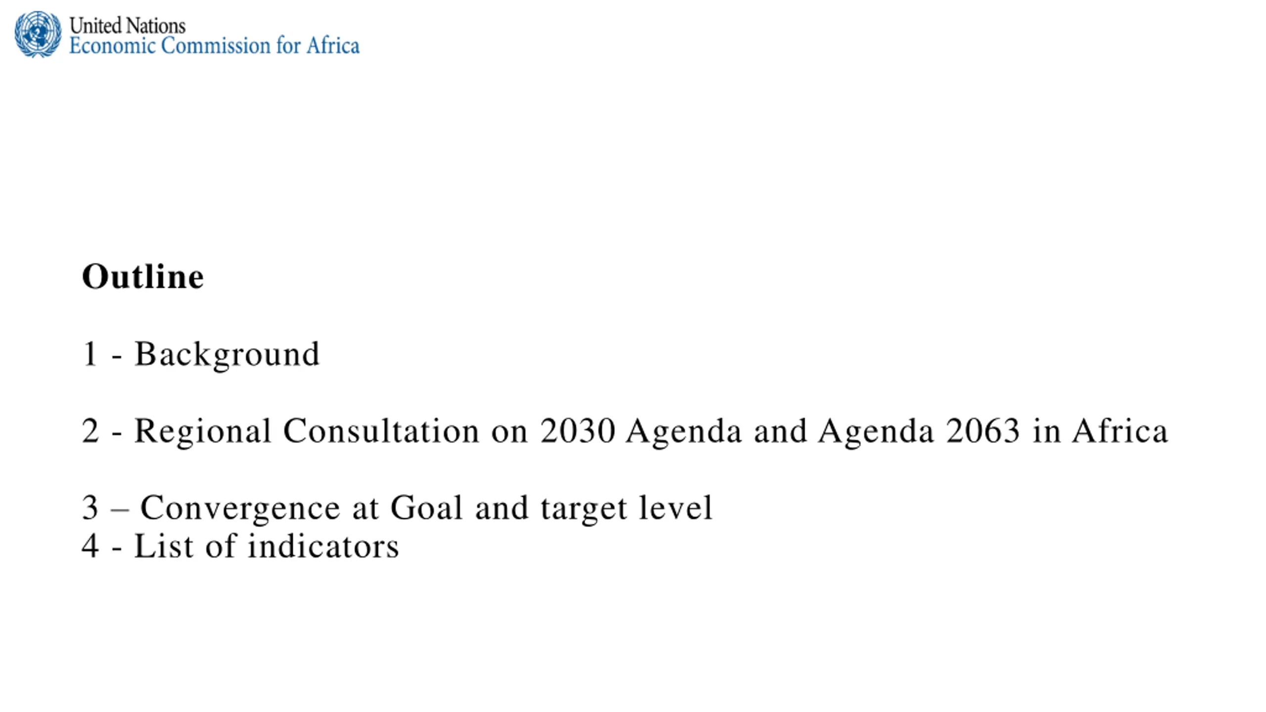 Outline 1 - Background 2 - Regional Consultation on 2030 Agenda and Agenda 2063 in Africa 3 Convergence at Goal and target level 4 - List of indicators