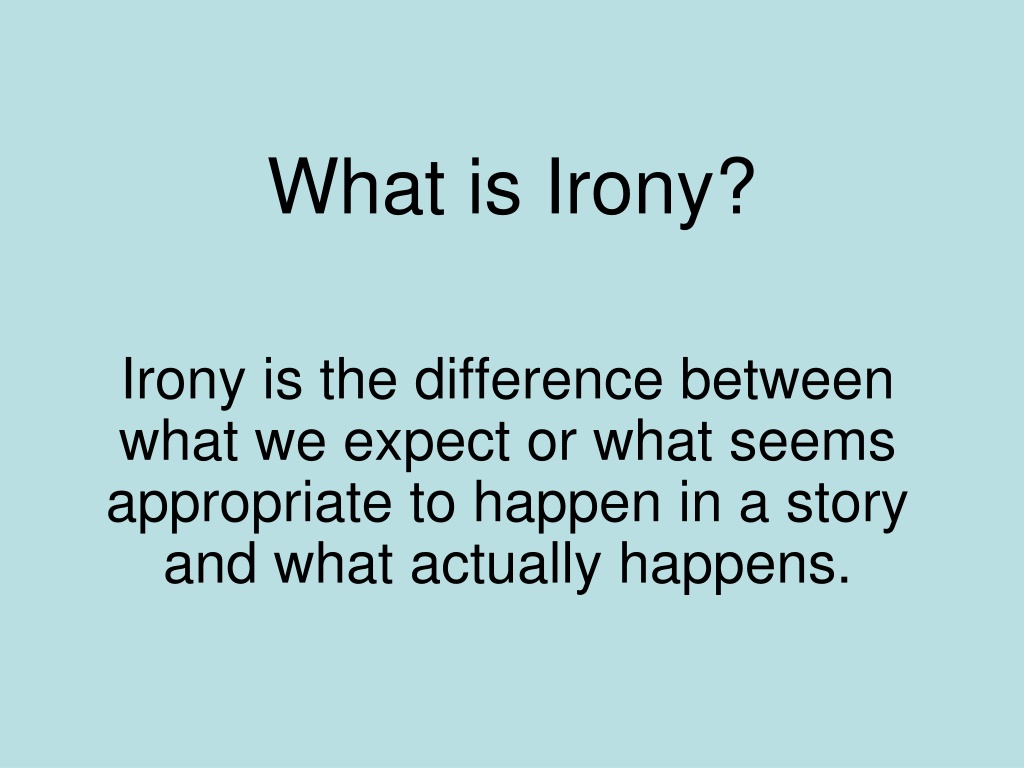 What is Irony? Irony is the difference between what we expect or what seems appropriate to happen in a story and what actually happens.