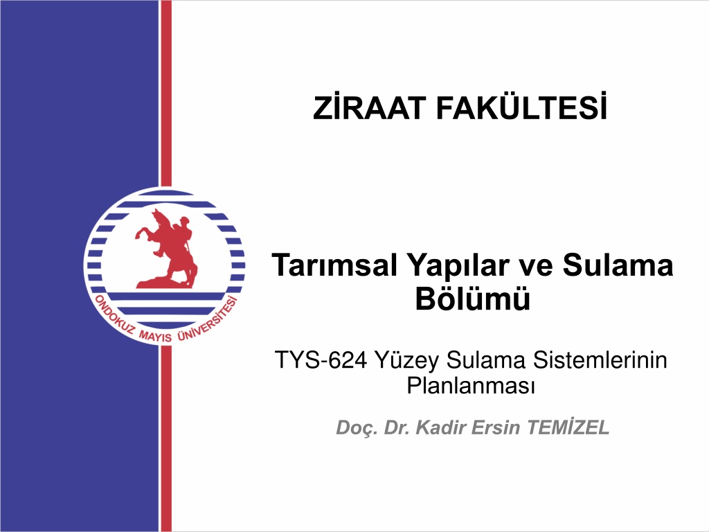 ZRAAT FAKLTES Tar msal Yap lar ve Sulama B l m TYS-624 Y zey Sulama Sistemlerinin Planlanmas Do . Dr. Kadir Ersin TEM ZEL