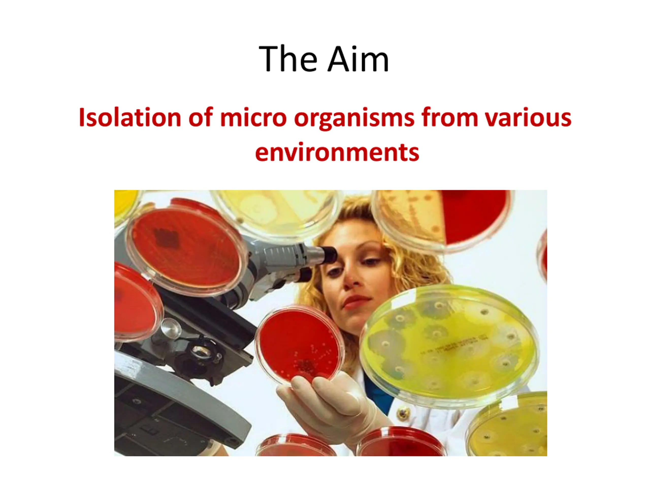 The Aim Isolation of micro organisms fromvarious environments