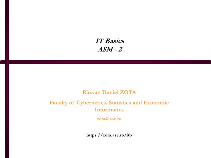 IT Basics ASM - 2 R zvan Daniel ZOTA Faculty of Cybernetics, Statistics and Economic Informatics zota@ase.ro https://zota.ase.ro/itb