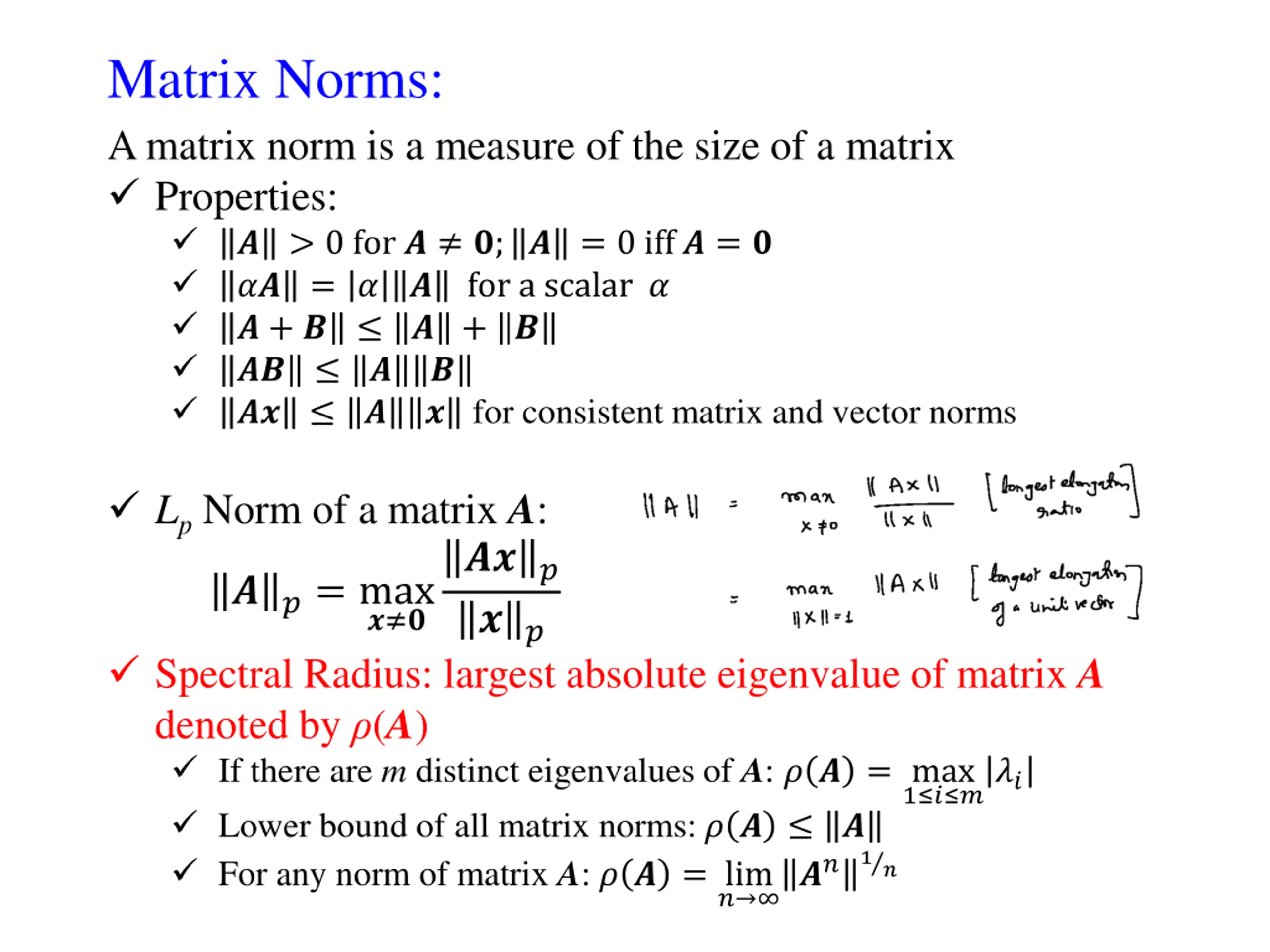 Matrix Norms: A matrix norm is a measure of the size of a matrix Properties: ? > 0 for ? ?; ? = 0 iff ? = ? ?? = ? ? for a scalar ? ? + ? ? + ? ?? ? ? ?? ? ?for consistent matrix and vector norms Lp Norm of a matrix A: ??? ?? ??= max ? ? Spectral Radius: largest absolute eigenvalue of matrix A denoted by (A) If there are m distinct eigenvalues of A: ? ? = max Lower bound of all matrix norms:? ? ? For any norm of matrix A:? ? = lim 1 ? ??? 1? ? ??