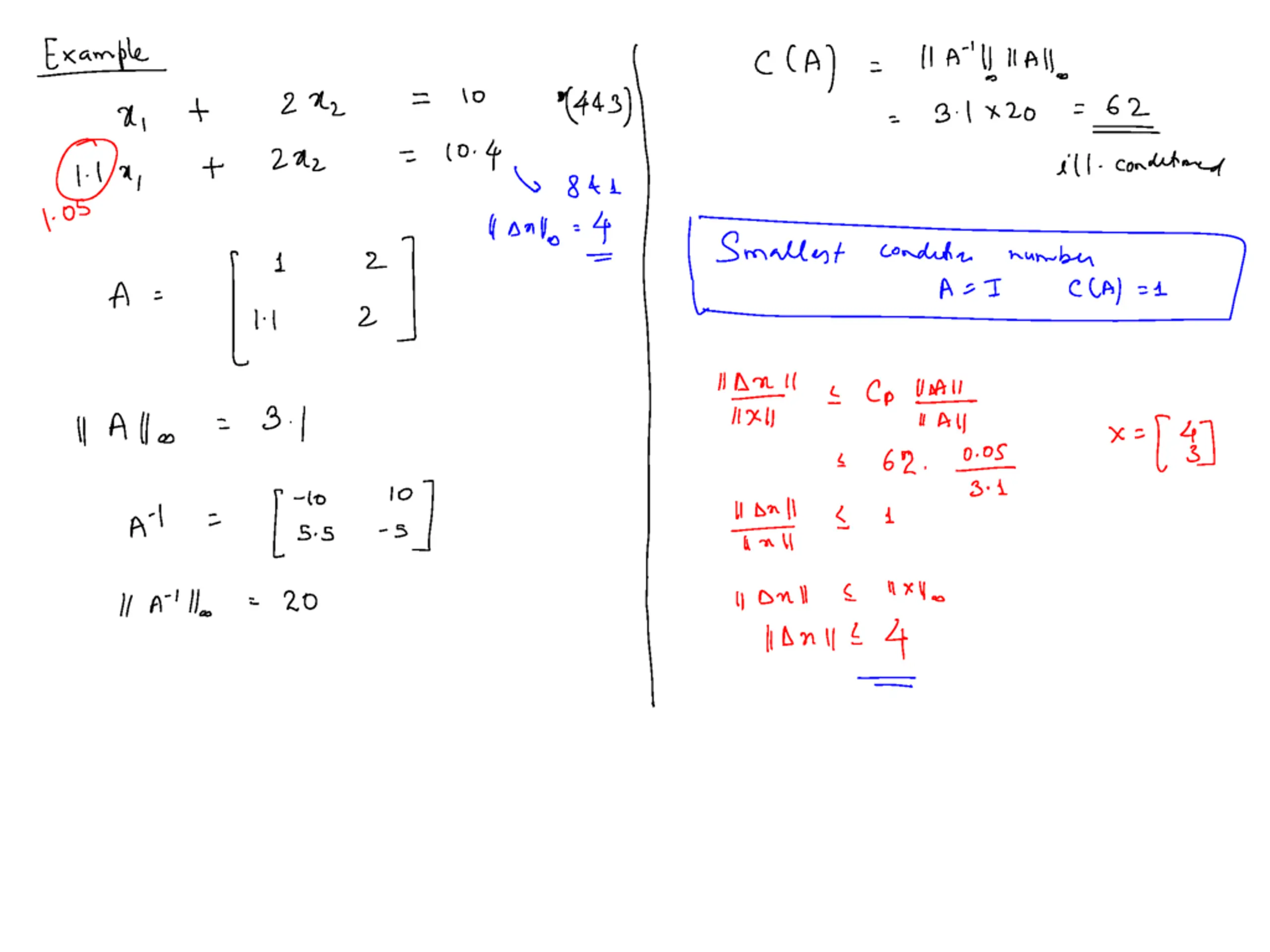 Perturbation in matrix A: System of equation: (A + A)(x + x)= b A x + A(x + x)=0 since, Ax = b x =- A-1 A(x + x) Take the norms of vectors and matrices: ?? = ? ??? ? + ?? ? ? ? ? ?? ?? ? + ?? ?? ? + ? ? ?? Product of perturbation quantities ?? ? ?? ? ? ? ?