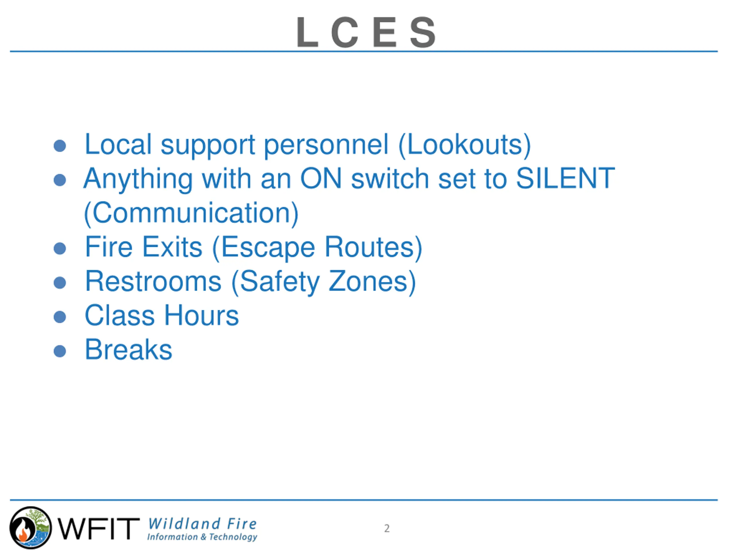 L C E S Local support personnel (Lookouts) Anything with an ON switch set to SILENT (Communication) Fire Exits (Escape Routes) Restrooms (Safety Zones) Class Hours Breaks 2