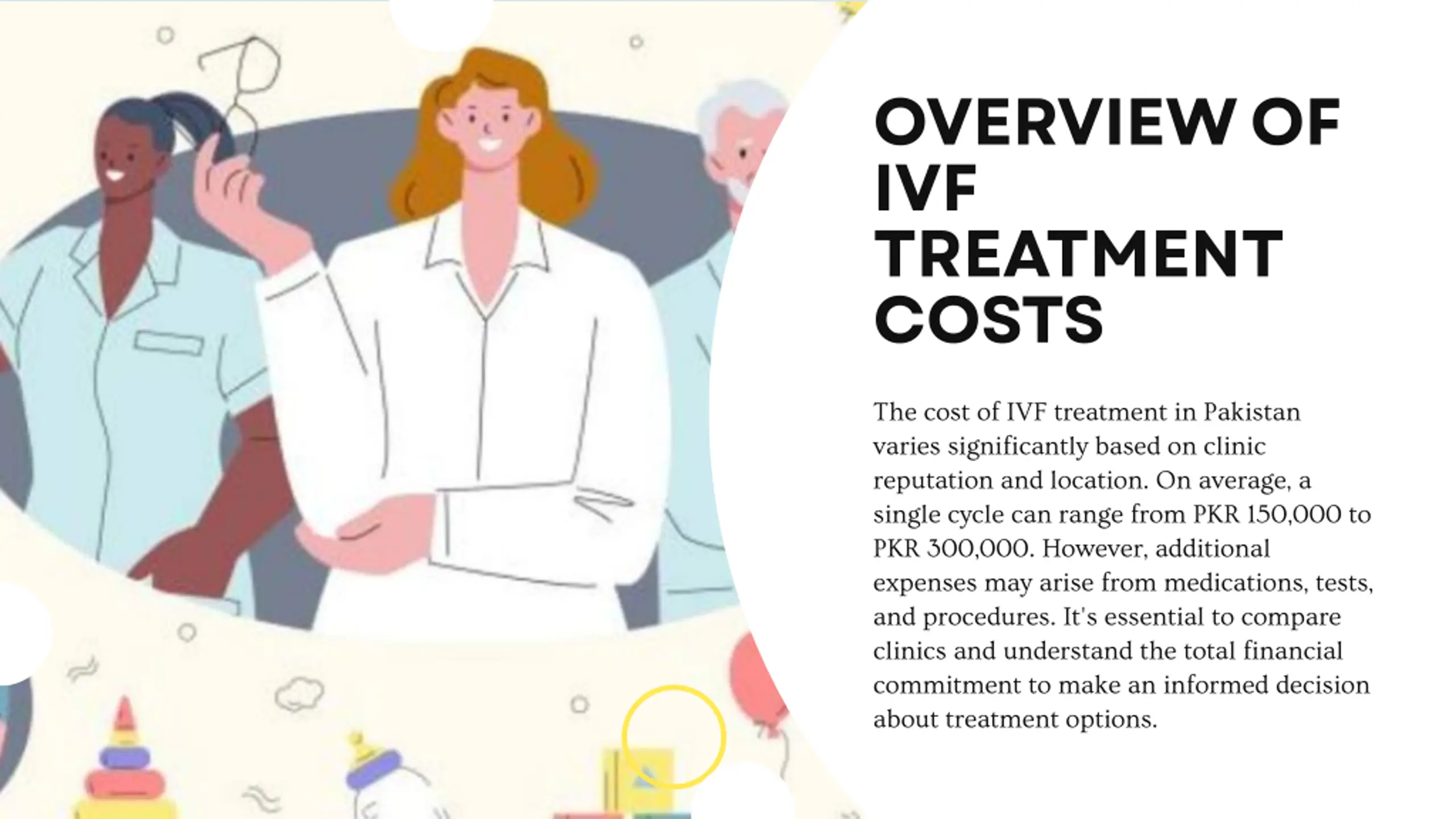 OVERVIEW OF IVF TREATMENT COSTS The cost of IVF treatment in Pakistan varies significantly based on clinic reputation and location. On average, a single cycle can range from PKR 150,000 to PKR 300,000. However, additional expenses may arise from medications, tests, and procedures. It's essential to compare clinics and understand the total financial commitment to make an informed decision about treatment options.