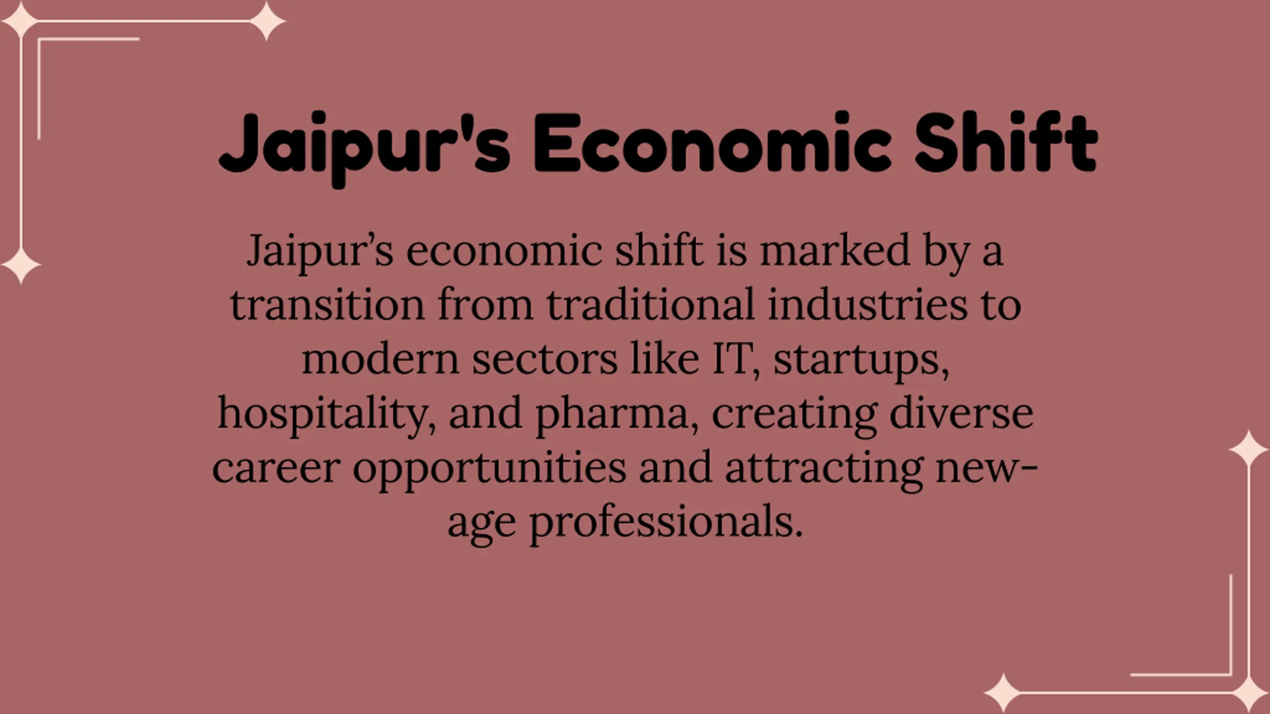 Jaipur's Economic Shift PROJECT OBJECTIVES Jaipur s economic shift is marked by a transition from traditional industries to modern sectors like IT, startups, hospitality, and pharma, creating diverse career opportunities and attracting new- age professionals. ACHIEVE GOALS OUTCOMES AND RESULTS CONTINUOUS IMPROVEMENT
