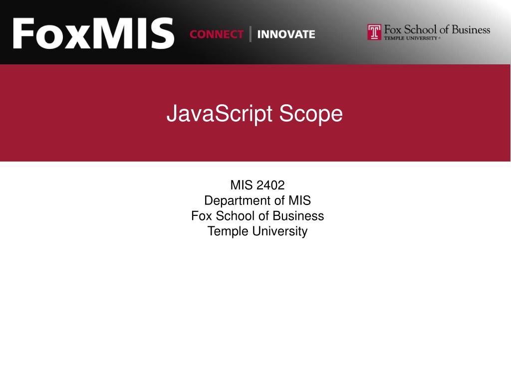 JavaScript Scope MIS 2402 Department of MIS Fox School of Business Temple University