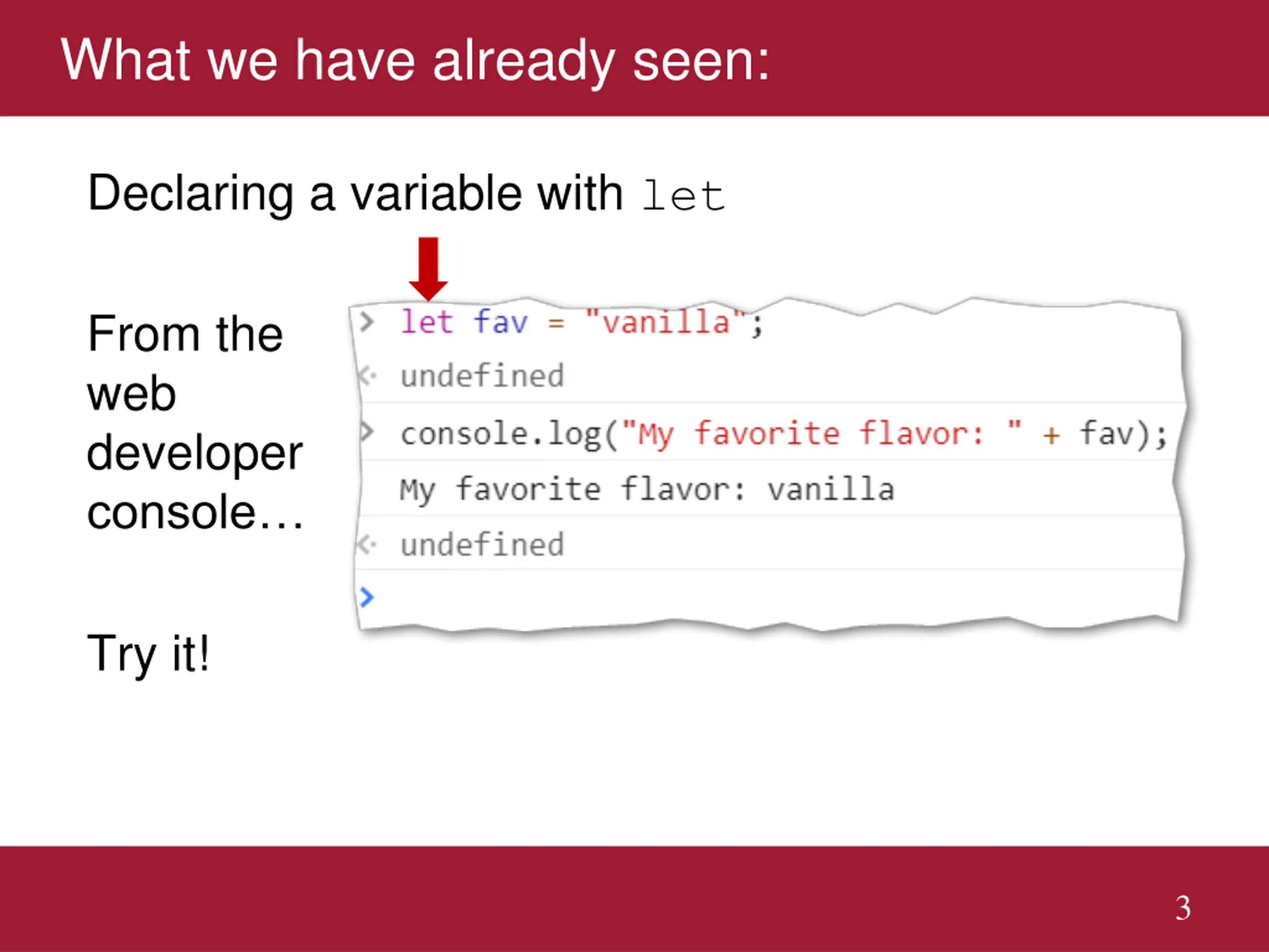 What we have already seen: Declaring a variable with let From the web developer console Try it! 3