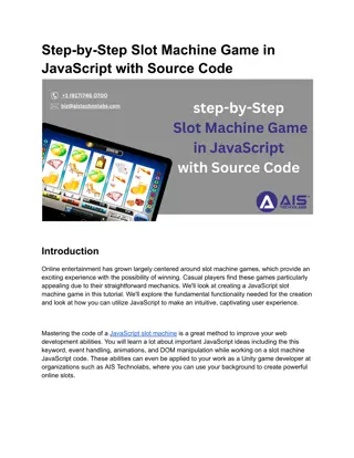 Scalable assets: Ensure images are crisp on all screen sizes. Tactile Interactions: Customizing buttons and reels for tactile inputs. Monetizing Your Slot Machine Game Once you ve completed your game, consider picking up: Advertising: Work with ad networks to have ads show during play. In-game purchases: Offer cosmetic items or bonus spins. Licenses: Allow developers or other businesses to use your code for a fee. Sharing Your Creation with the World Don t let your hard work go unnoticed! Share your game: GitHub: Show your code to the developer community. Portfolio website: Impress clients or employers. Social Media: Connect with sports fans and get feedback. Common Mistakes to Avoid Skip testing: Mistakes can ruin the user experience. Code Overcomplication: Keep it clean and modular. Ignore user feedback: Listen to players to improve your game. Final Thoughts Building a slot machine sport in JavaScript is extra than only a amusing mission it s a way to enhance your talents, explicit your creativity, and doubtlessly make money. Whether you're a newbie or an skilled developer, there may be some thing for every person in this enterprise. Need help bringing your vision to life? Contact AIS Technolabs for expert support. Contact us today! Source>>https://medium.com/@aistechnolabspvtltd/javascript-slot-machine-code-build-y our-own-game-and-level-up-your-skills-69c80b8b785b