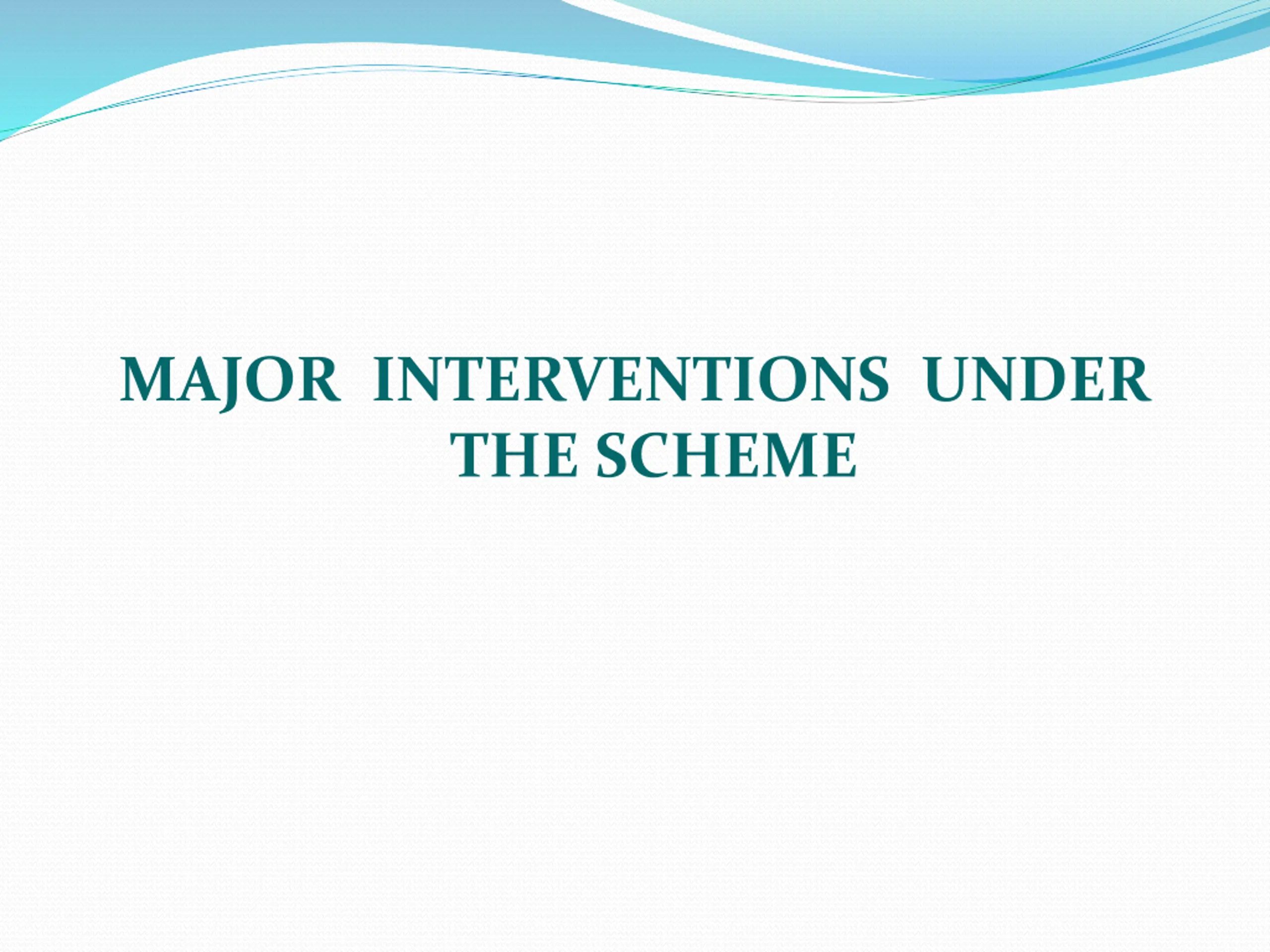 MAJOR INTERVENTIONS UNDER THE SCHEME