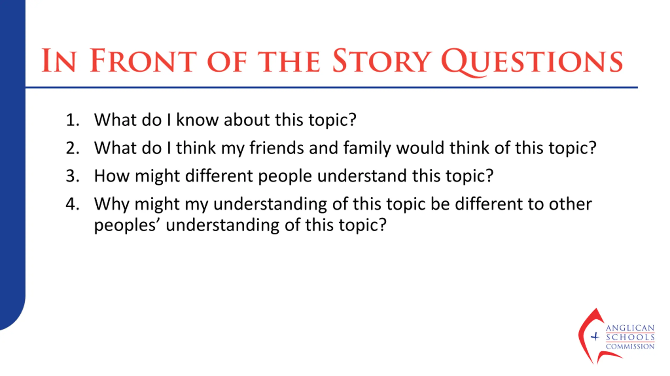 1. What do I know about this topic? 2. What do I think my friends and family would think of this topic? 3. How might different people understand this topic? 4. Why might my understanding of this topic be different to other peoples understanding of this topic?