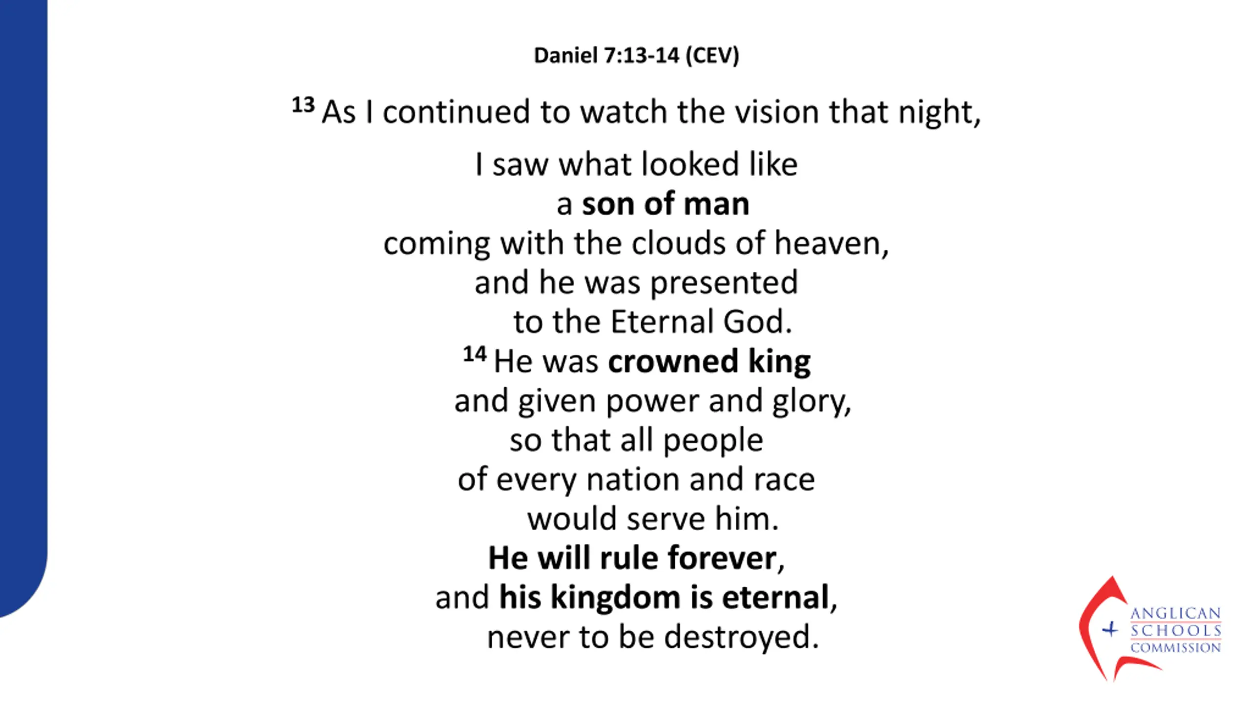 Daniel 7:13-14 (CEV) 13As I continued to watch the vision that night, I saw what looked like a son of man coming with the clouds of heaven, and he was presented to the Eternal God. 14He was crowned king and given power and glory, so that all people of every nation and race would serve him. He will rule forever, and his kingdom is eternal, never to be destroyed.