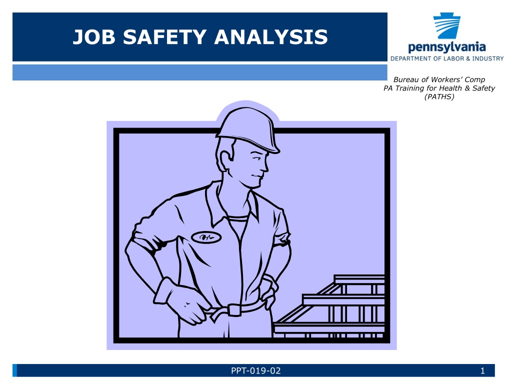 JOB SAFETY ANALYSIS Bureau of Workers Comp PA Training for Health & Safety (PATHS) PPT-019-02 1