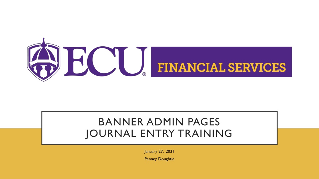 BANNER ADMIN PAGES JOURNAL ENTRY TRAINING January 27, 2021 Penney Doughtie