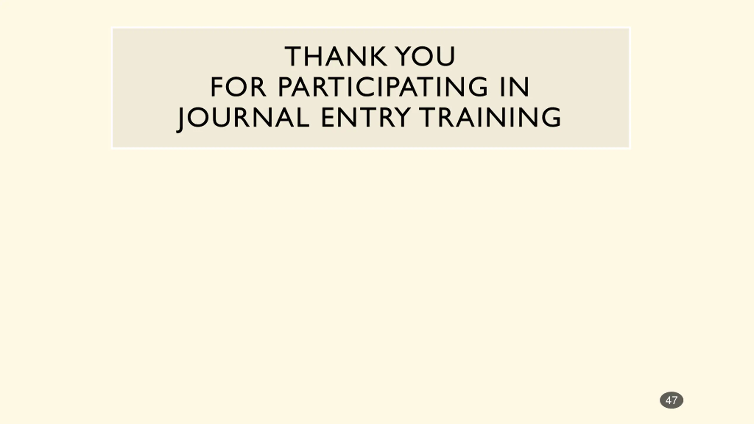 THANK YOU FOR PARTICIPATING IN JOURNAL ENTRY TRAINING 47