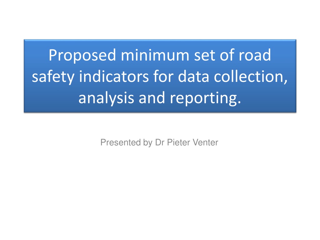 Proposed minimum set of road safety indicators for data collection, analysis and reporting. Presented by Dr Pieter Venter