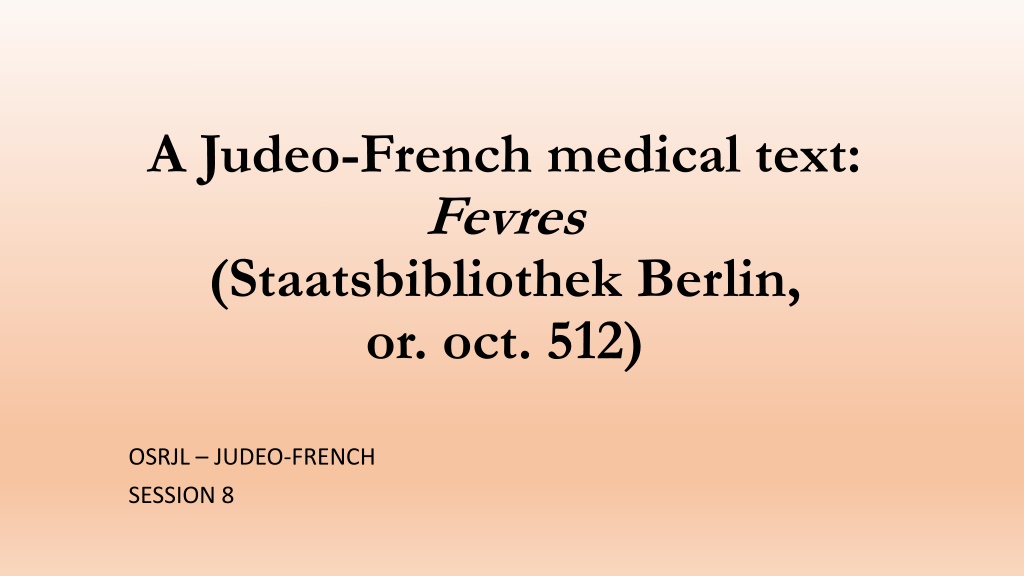 A Judeo-French medical text: Fevres (Staatsbibliothek Berlin, or. oct. 512) OSRJL JUDEO-FRENCH SESSION 8