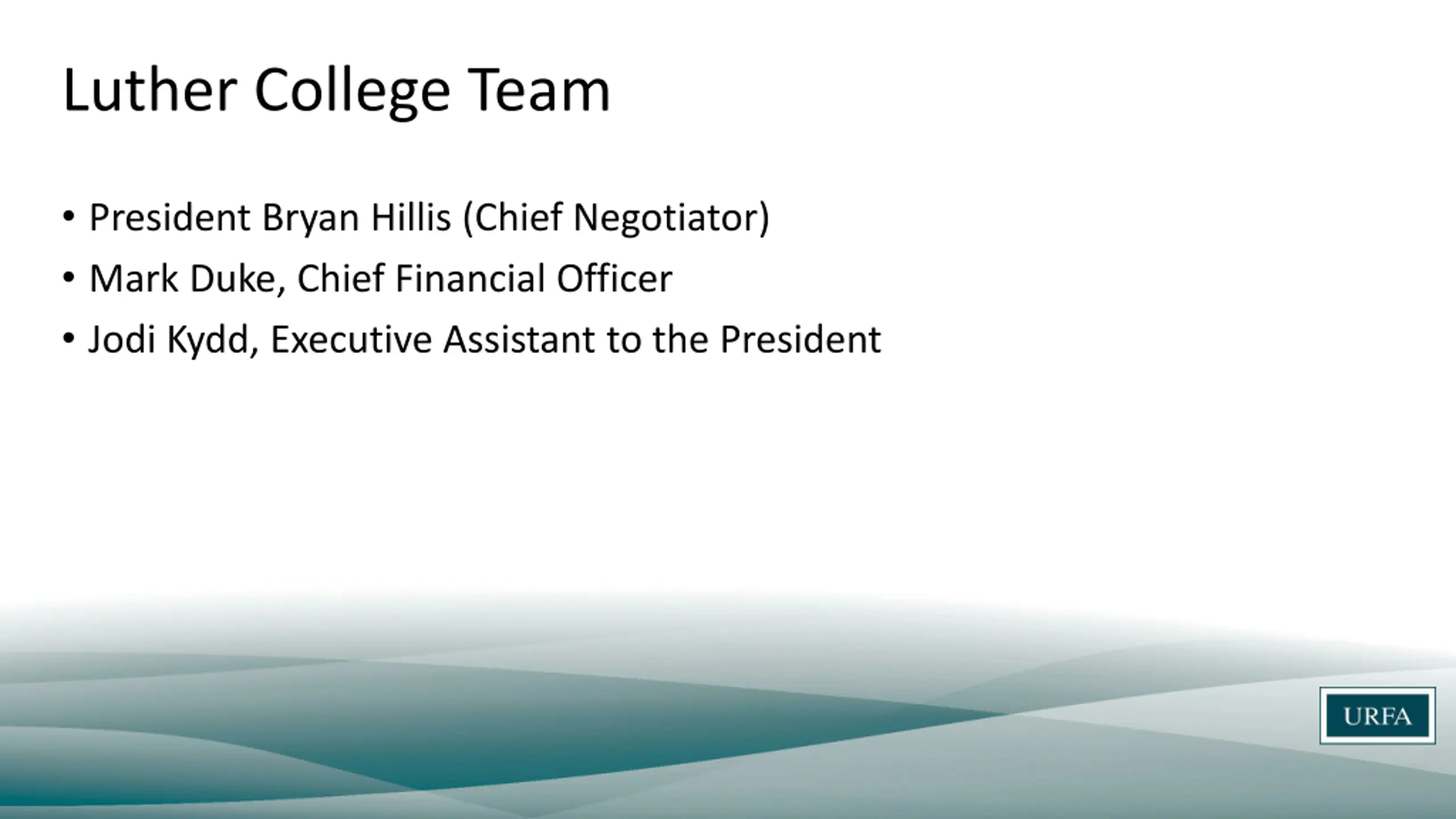 Luther College Team President Bryan Hillis (Chief Negotiator) Mark Duke, Chief Financial Officer Jodi Kydd, Executive Assistant to the President
