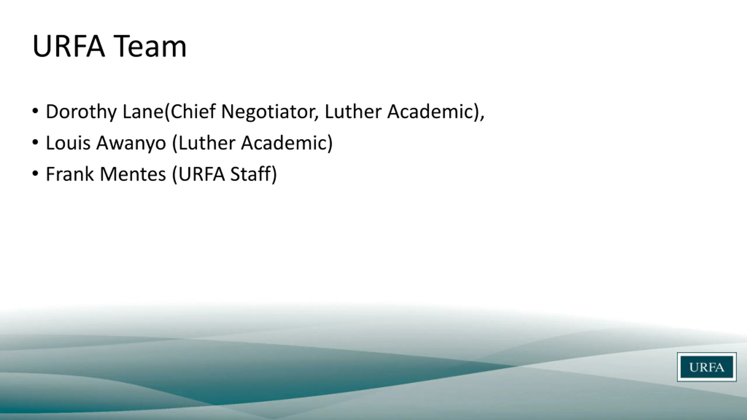 URFA Team Dorothy Lane(Chief Negotiator, Luther Academic), Louis Awanyo (Luther Academic) Frank Mentes (URFA Staff)