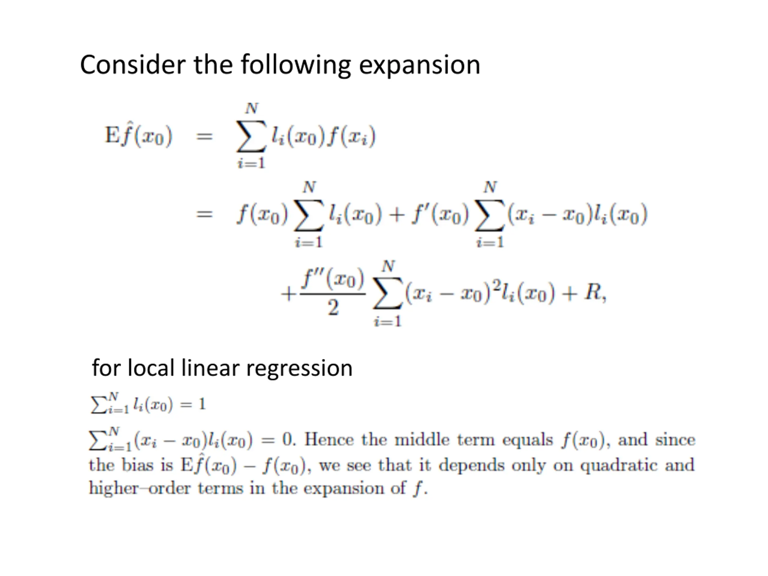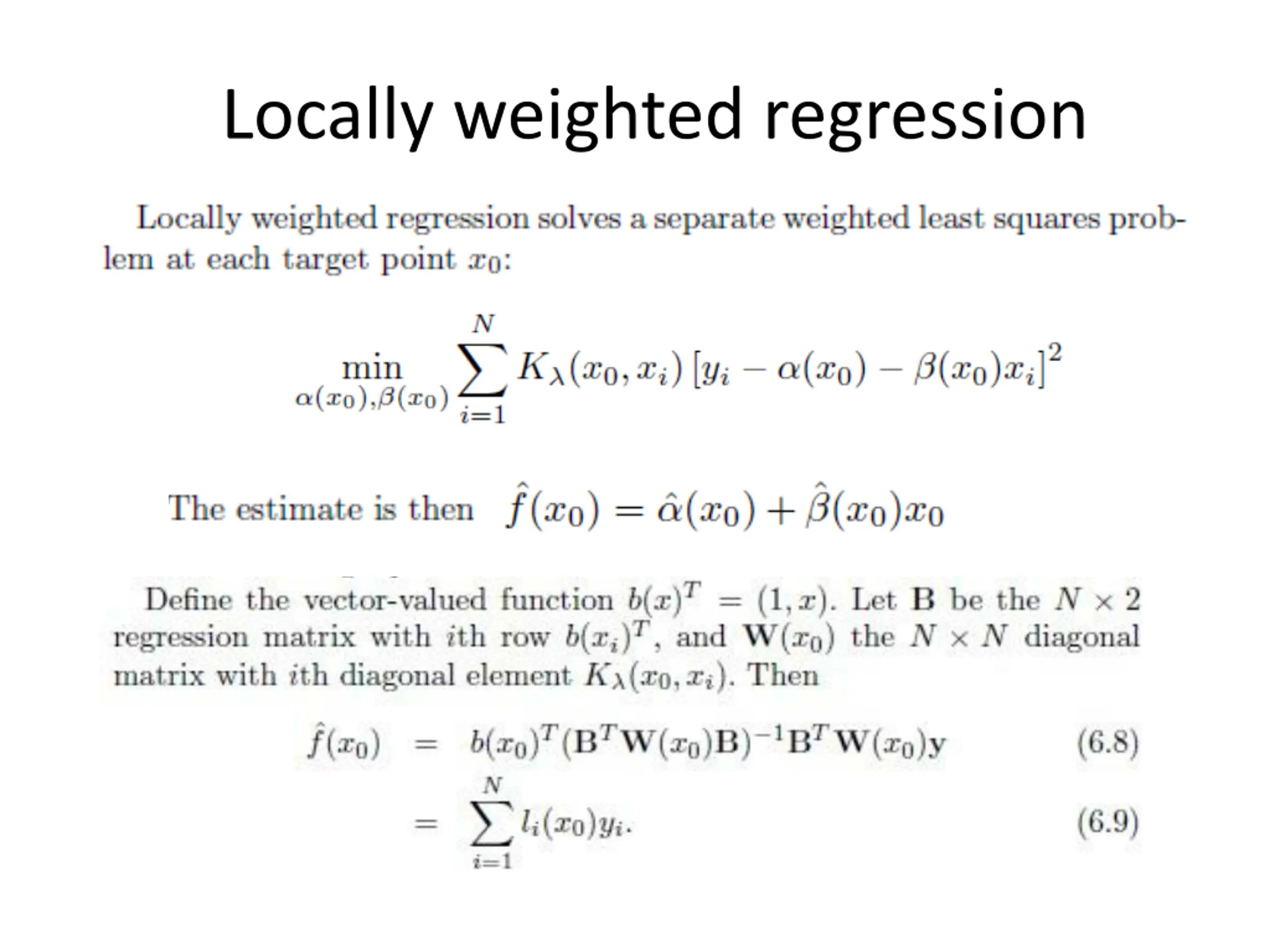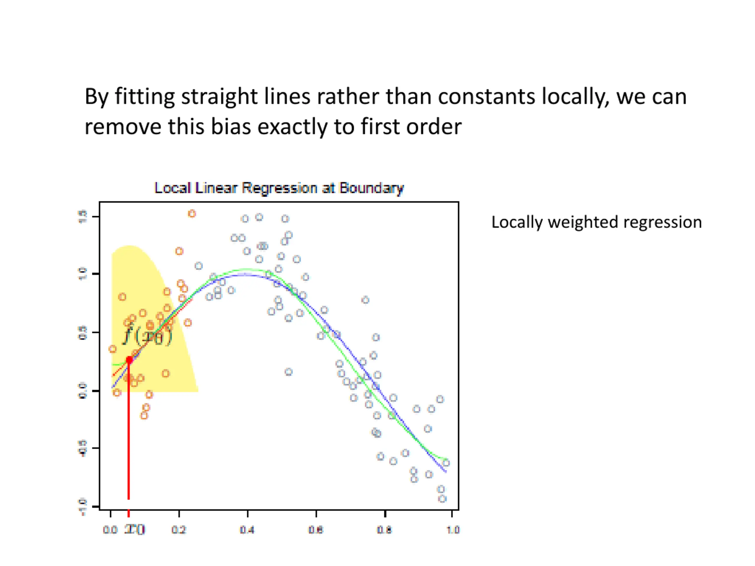 By fitting straight lines rather than constants locally, we can remove this bias exactly to first order Locally weighted regression