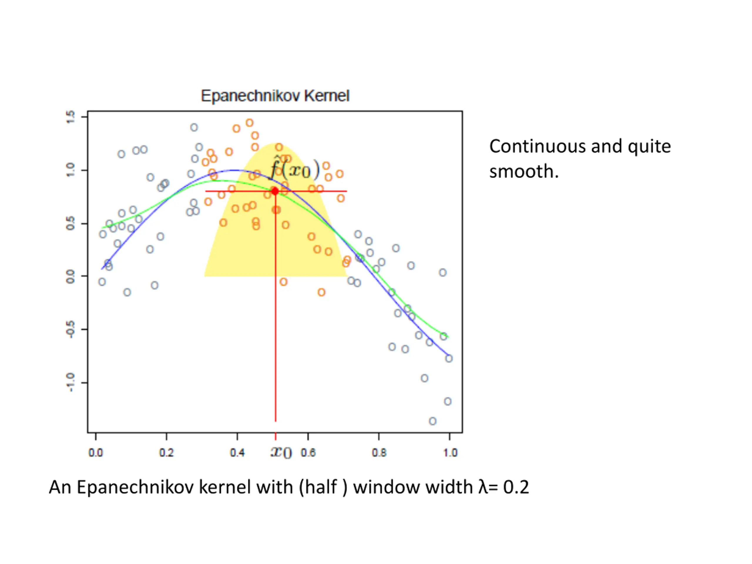 An example Nadaraya-Watson kernel-weighted average Nadaraya-Watson kernel-weighted average with the Epanechnikov quadratic kernel with