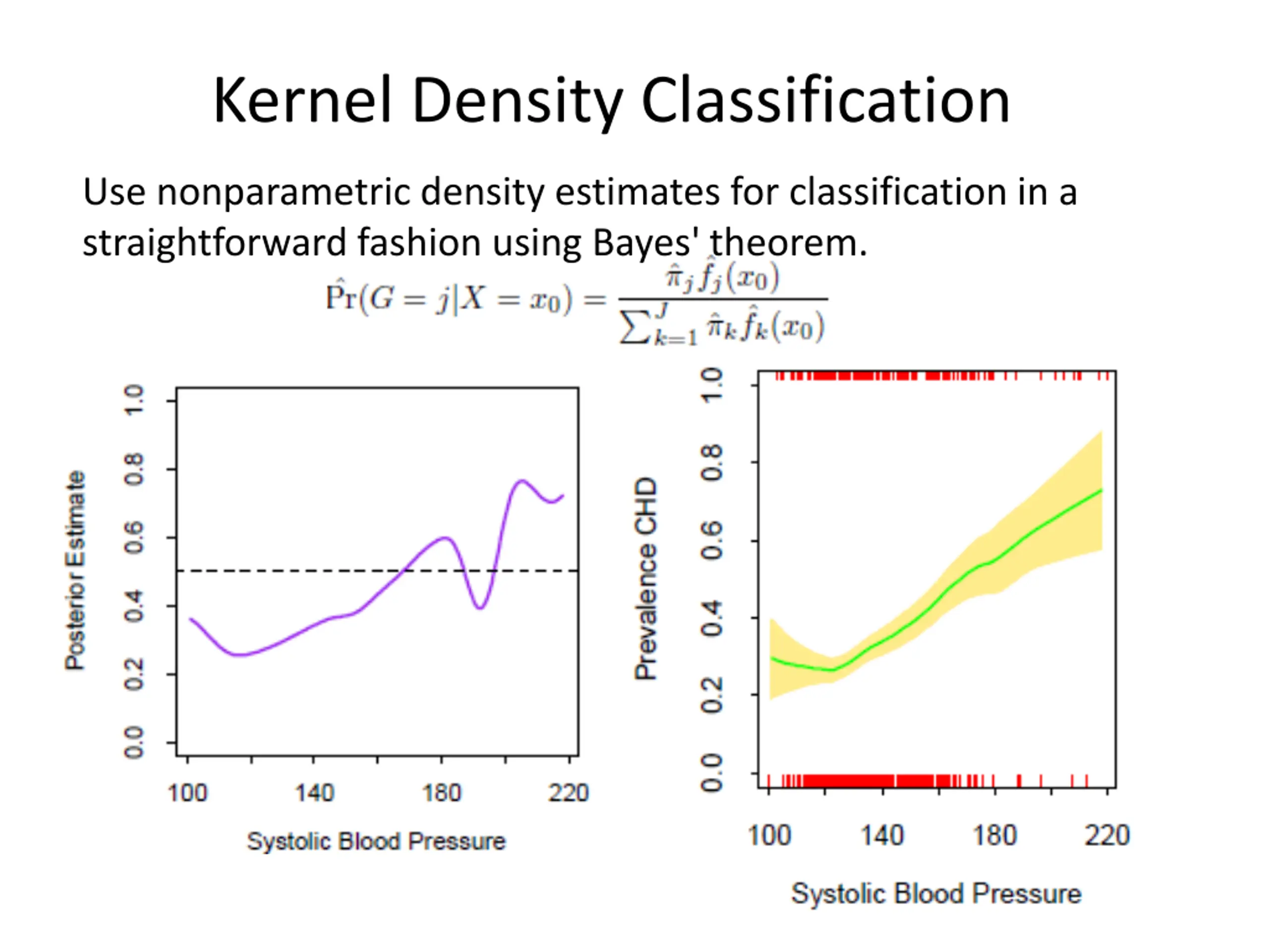 Kernel Density Classification Use nonparametric density estimates for classification in a straightforward fashion using Bayes' theorem.